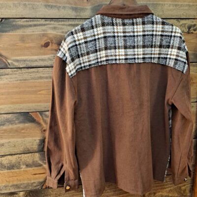 Plaid Oversized Long High Low Hem Shacket With Exposed Seams And Front Pockets
