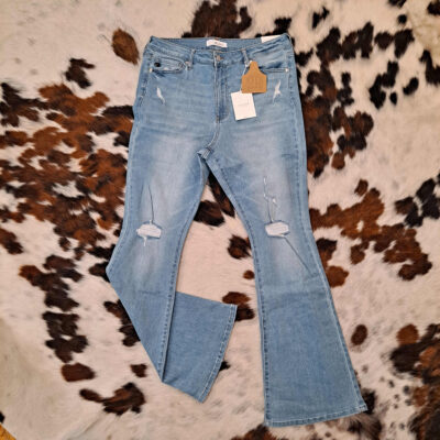 Jeanine-High Rise Flare Frayed Hem Jeans