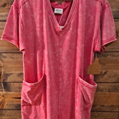 Denim Chambray V Neck Elastic Waist Drawstring with Adjustable Spaghetti Straps with Pockets