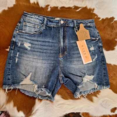 Lexi-Distressed Super High Rise Rigid Cuffed Hem Shorts