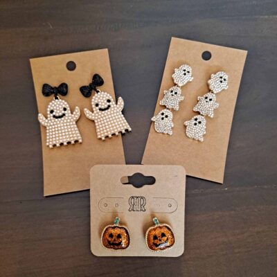 Halloween Linked Ghosts Rhinestones Dangling Earrings