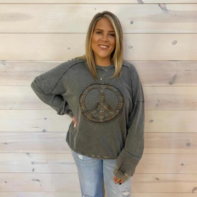 Mineral Washed Peace Sign Patch Design Terry Pullover