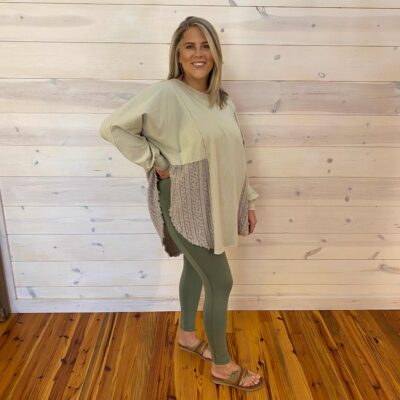 Oversized Thermal French Terry Waffle Mix Floral Patchwork Design Long Sleeve Top