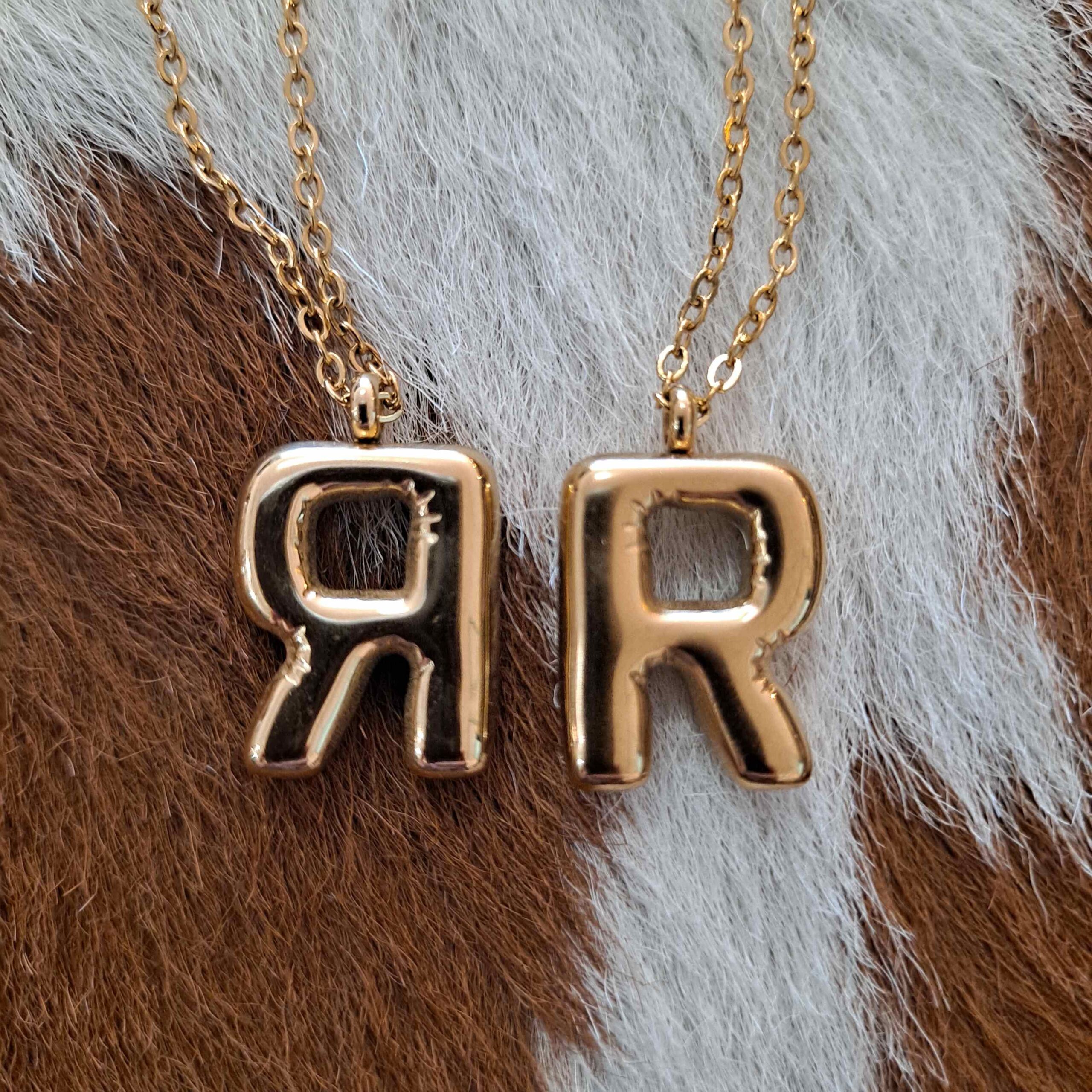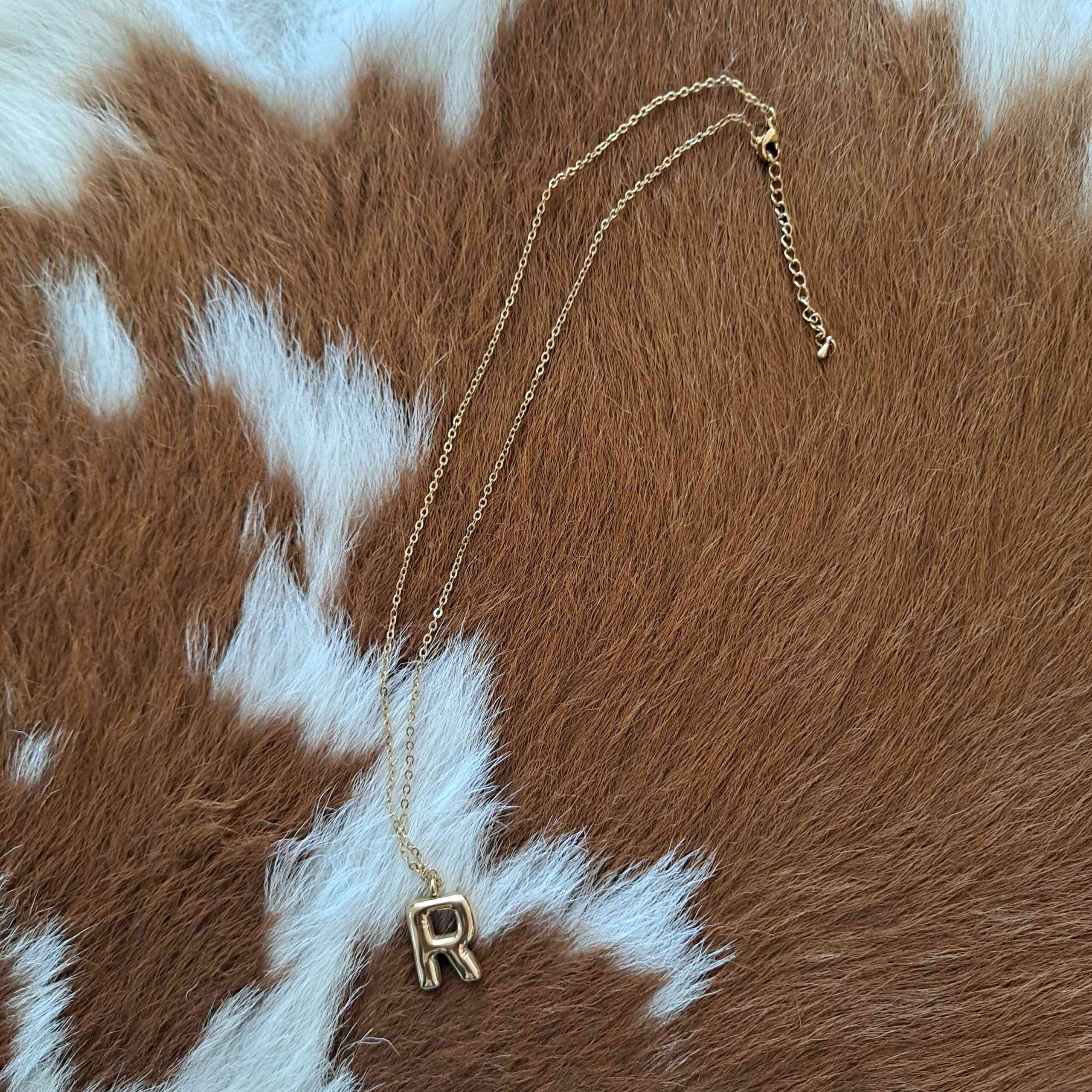 18K Gold Dipped Stainless Steel Tarnish Free Bubble Initial Necklace