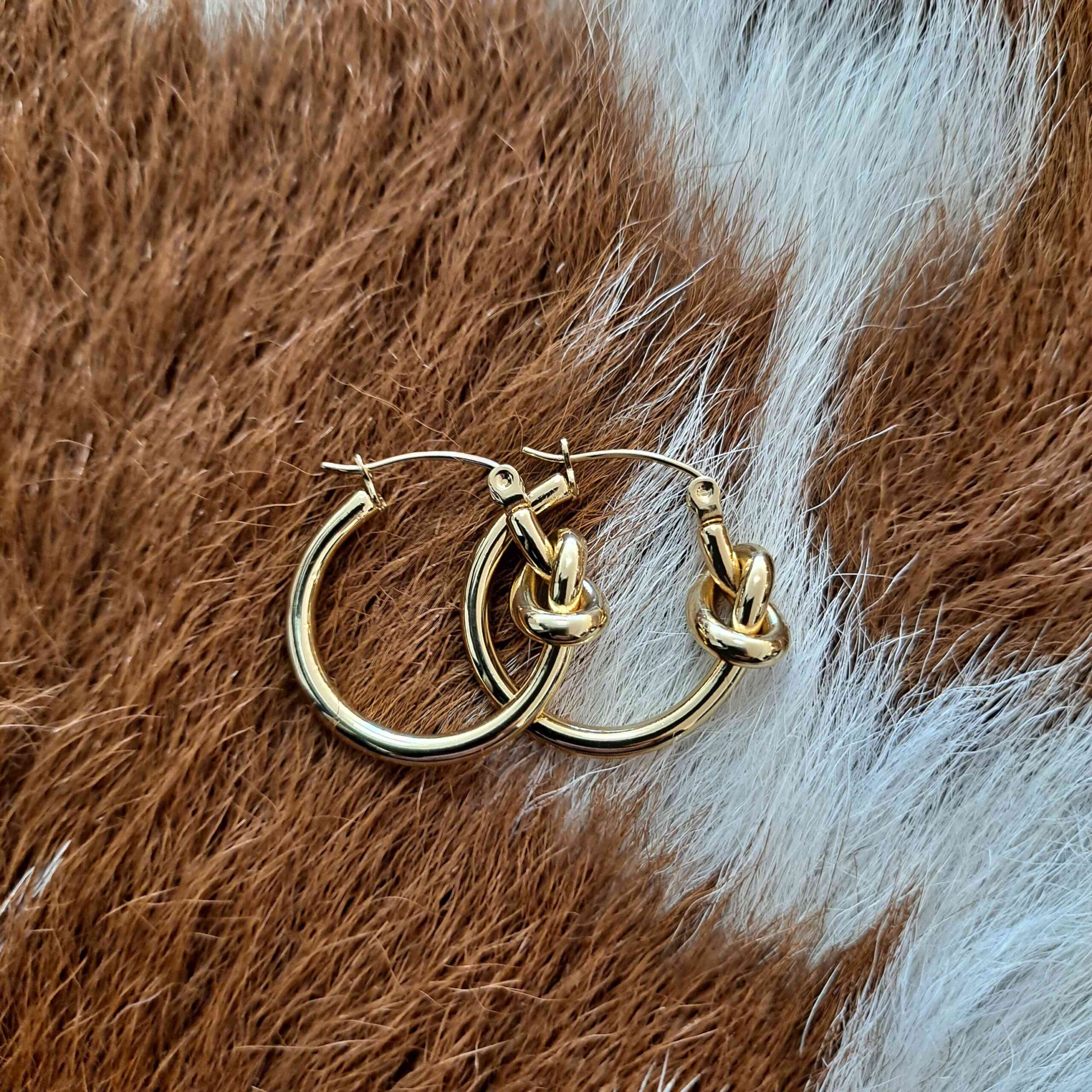 18K Waterproof Non-Tarnish Stainless Steel Knot Hoop Earrings