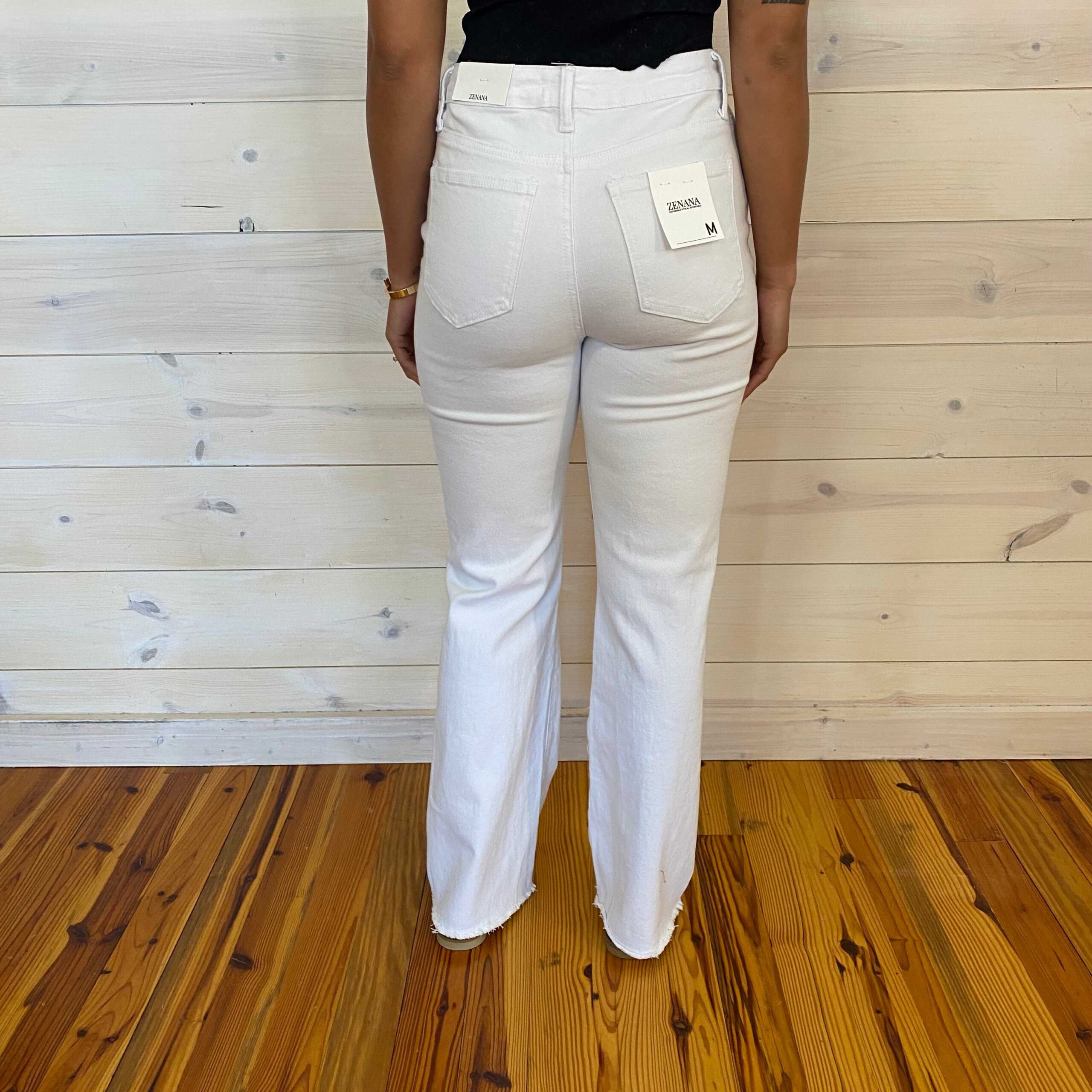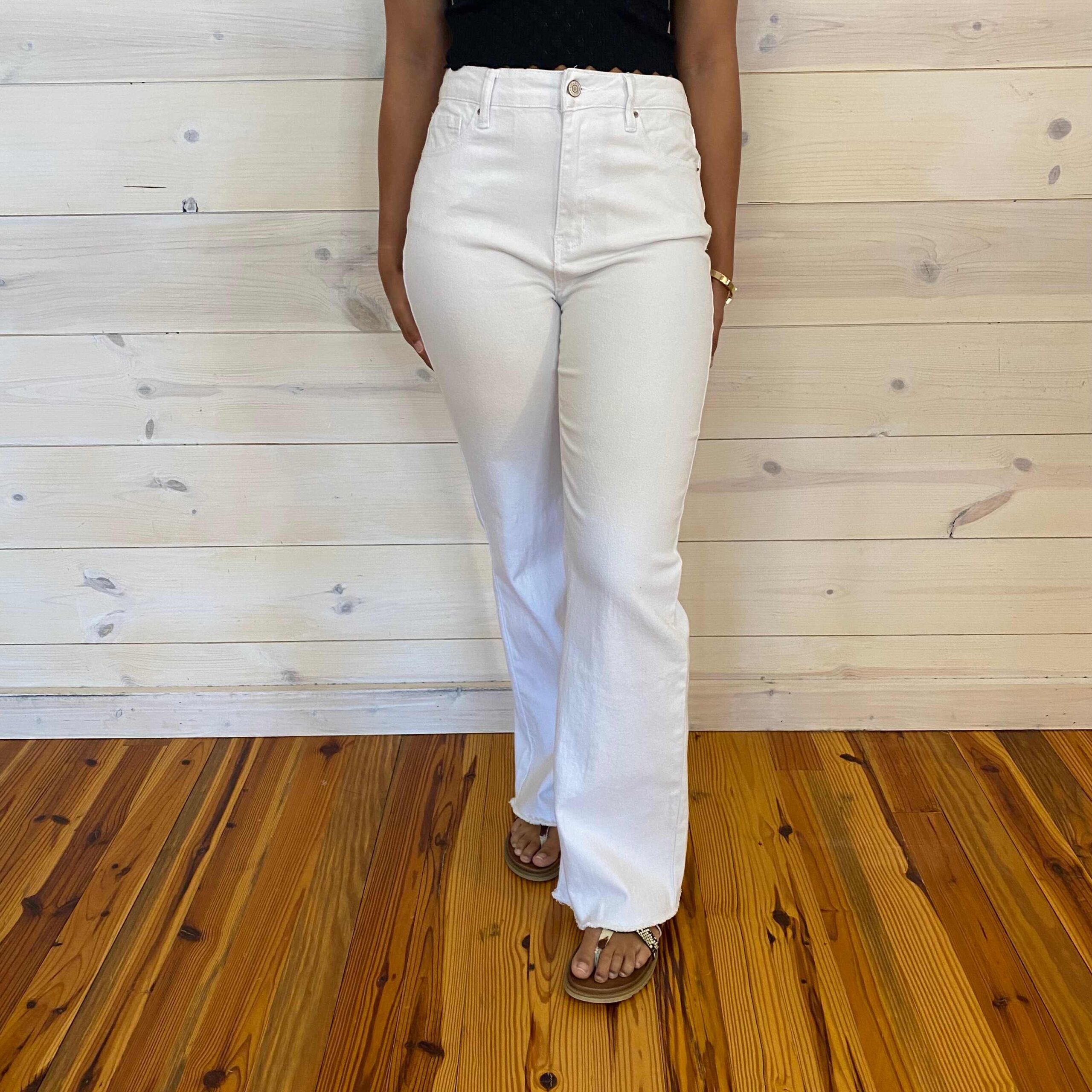 Acid Washed Frayed Cutoff Hem Wide Leg Pants
