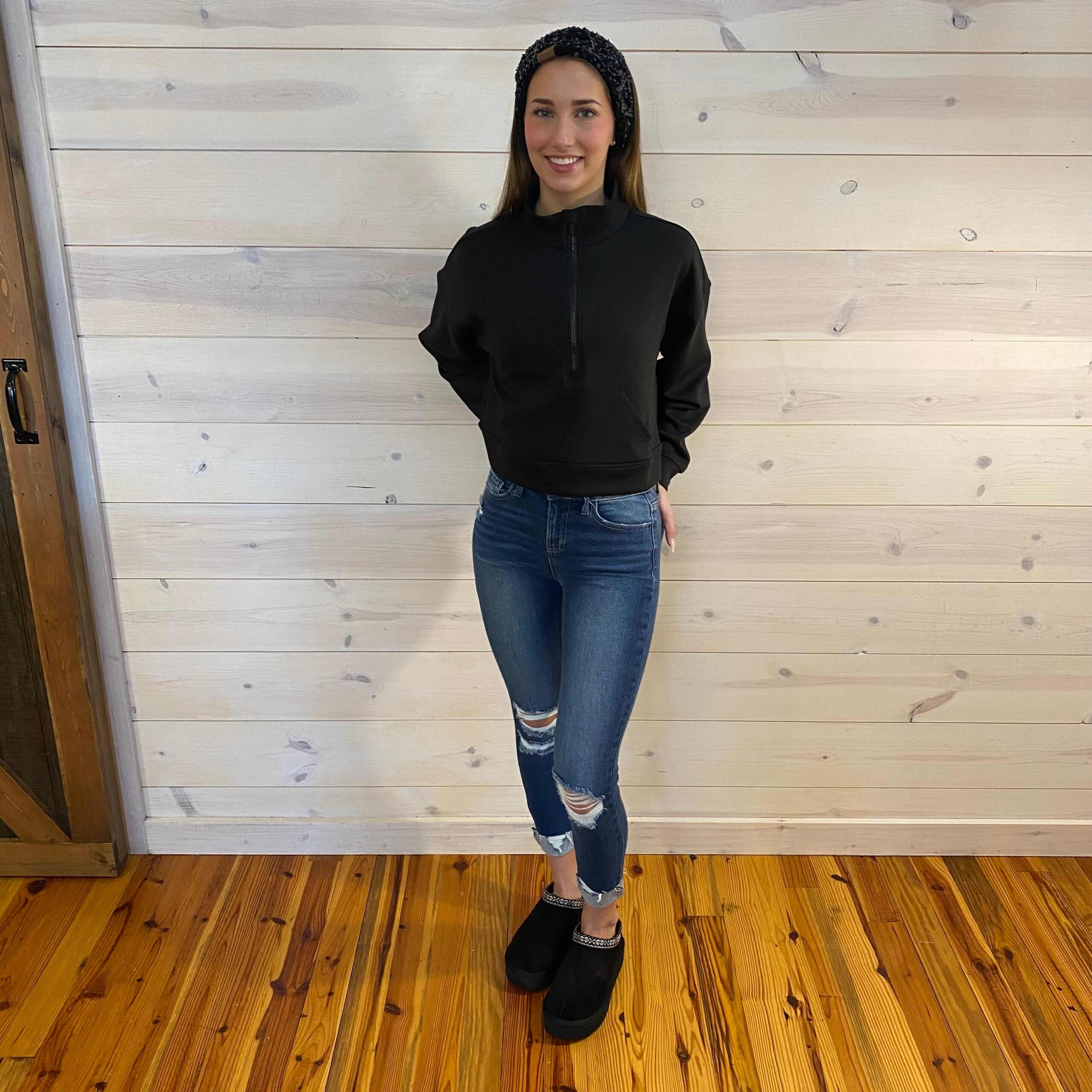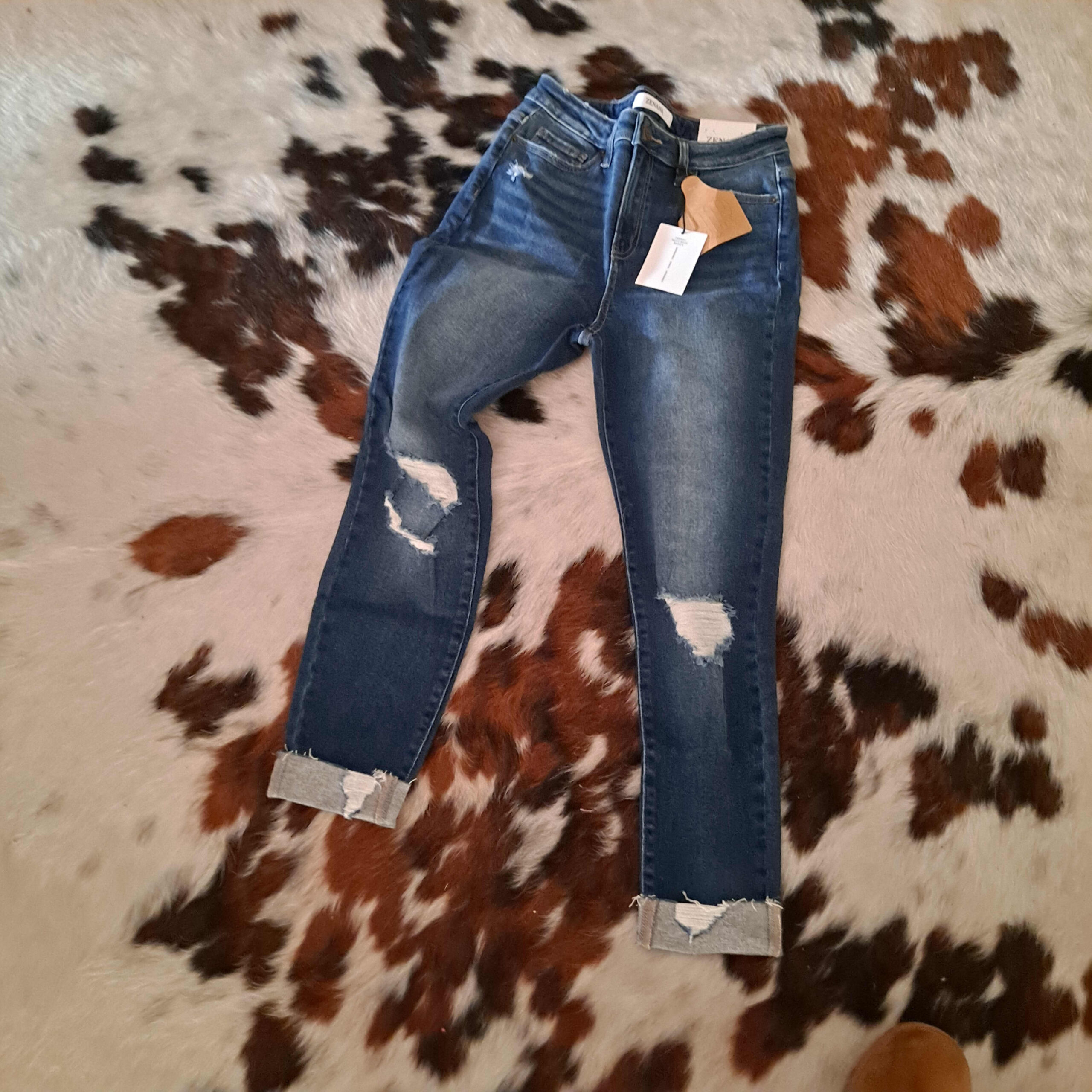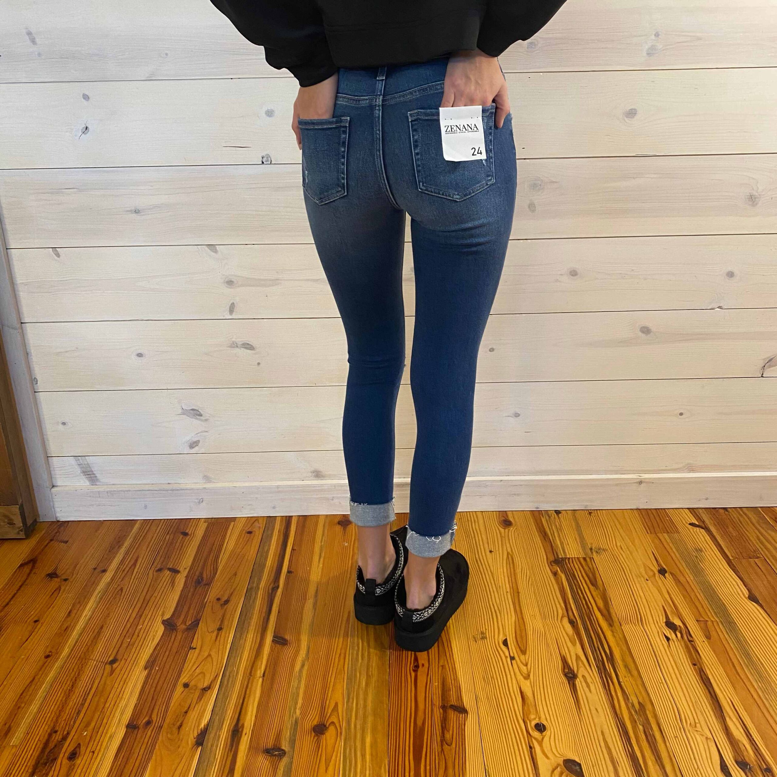 Alyssa-Mid Rise Distressed Cuffed Hem Skinny Denim