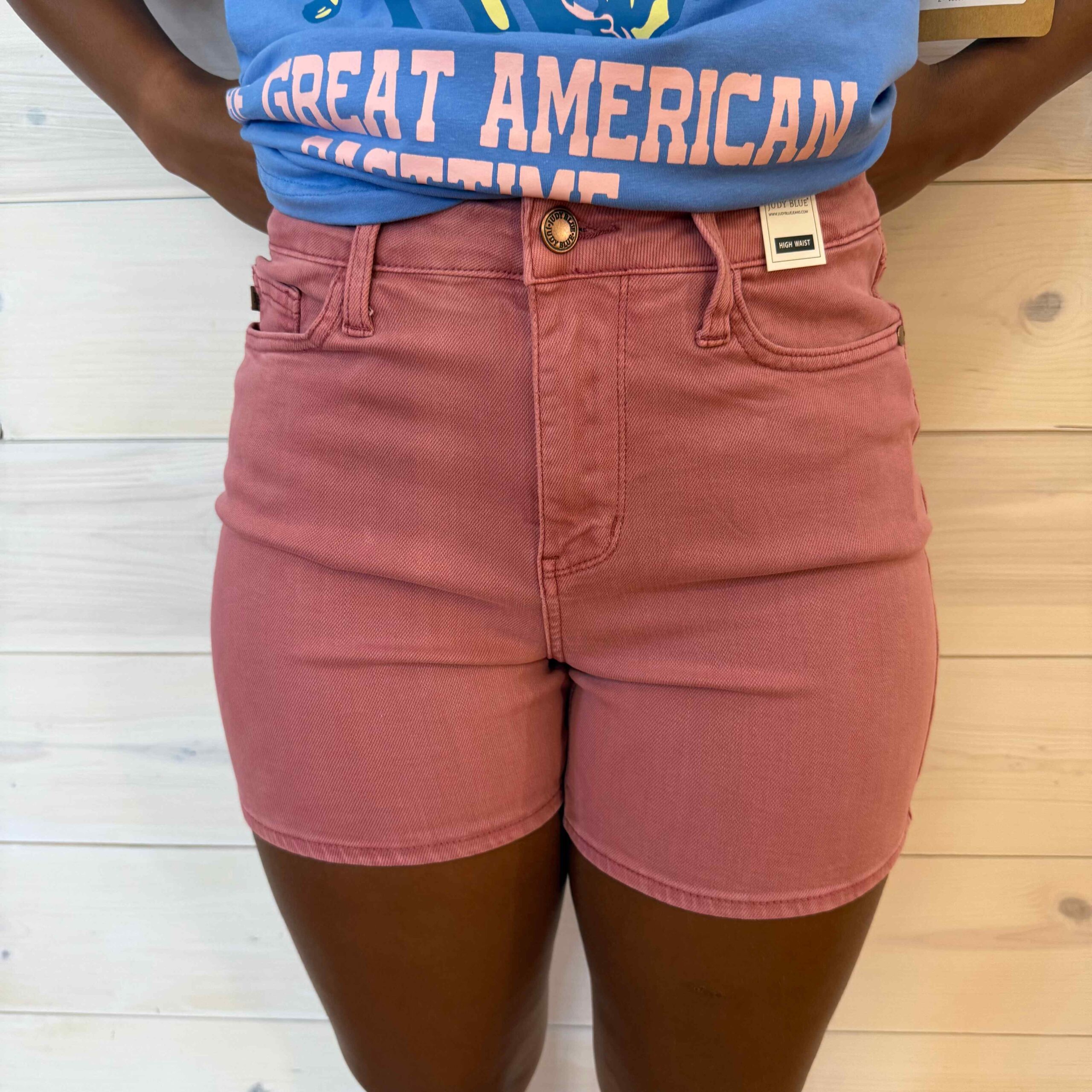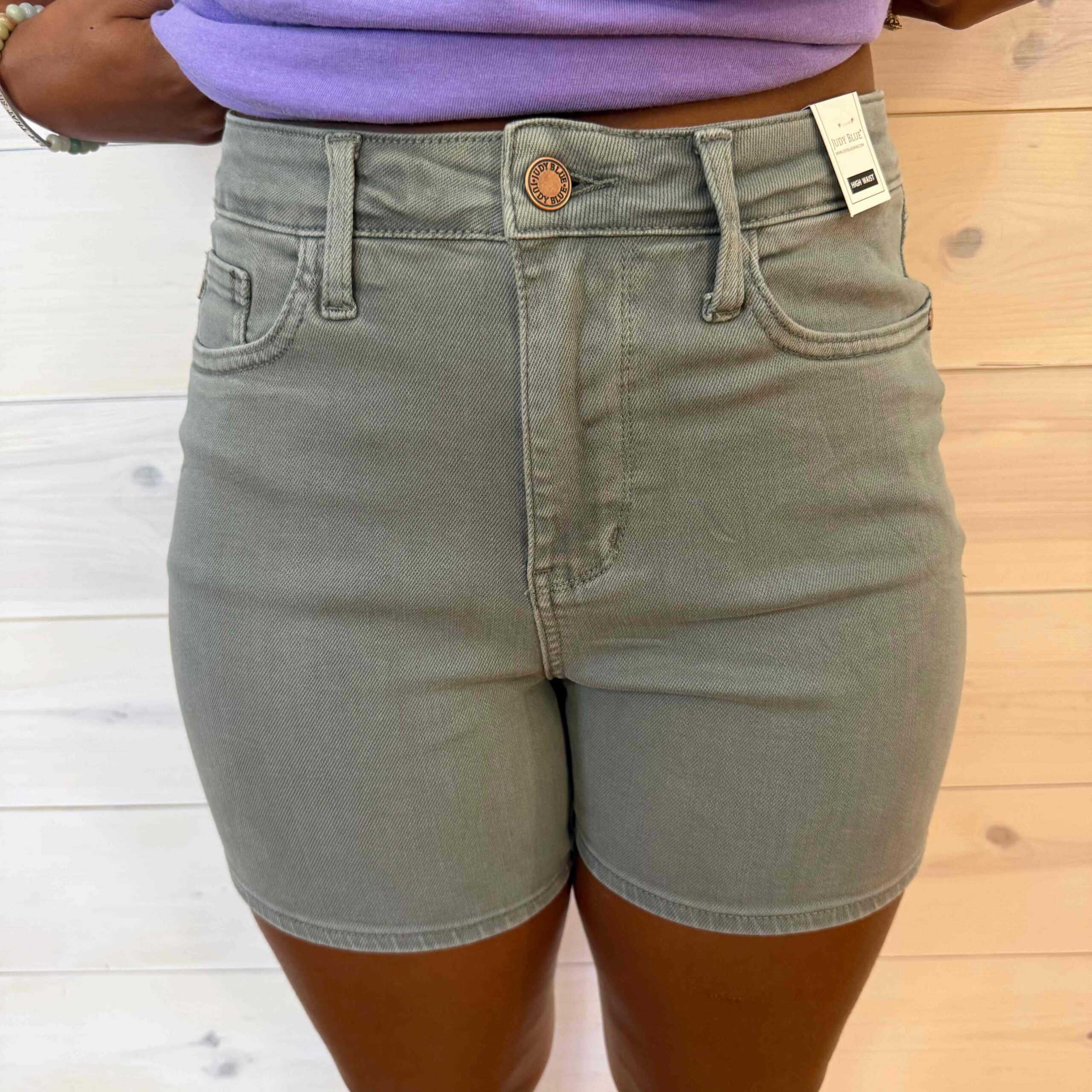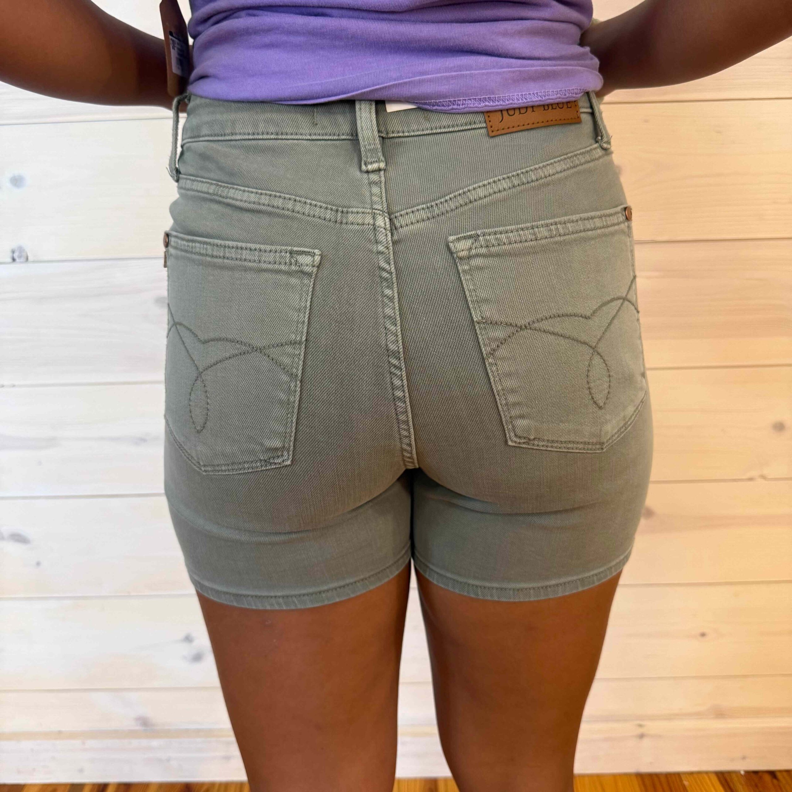 Beth-Mid Rise Tummy Control Dyed with Back Pocket Embroidery Shorts