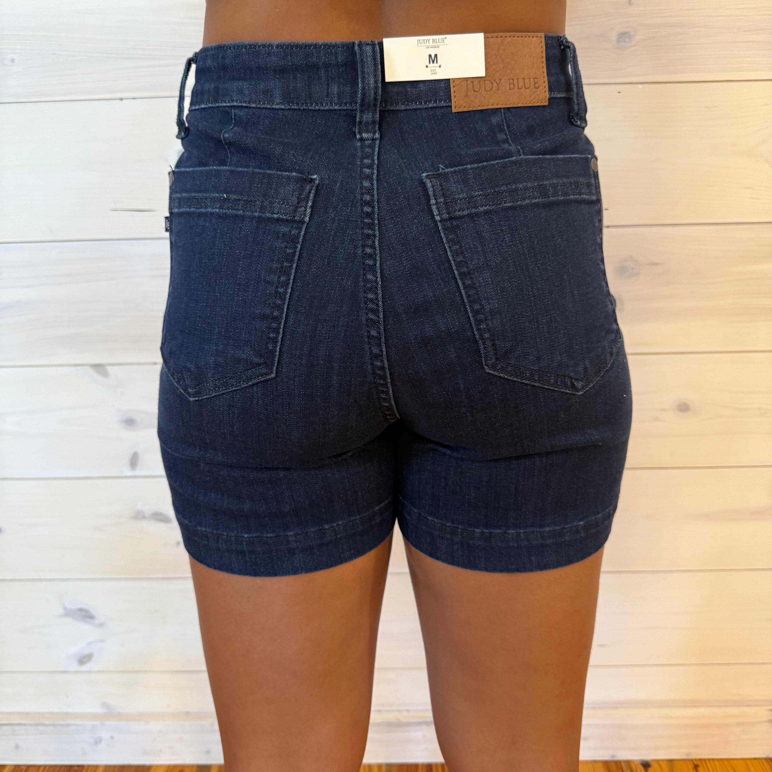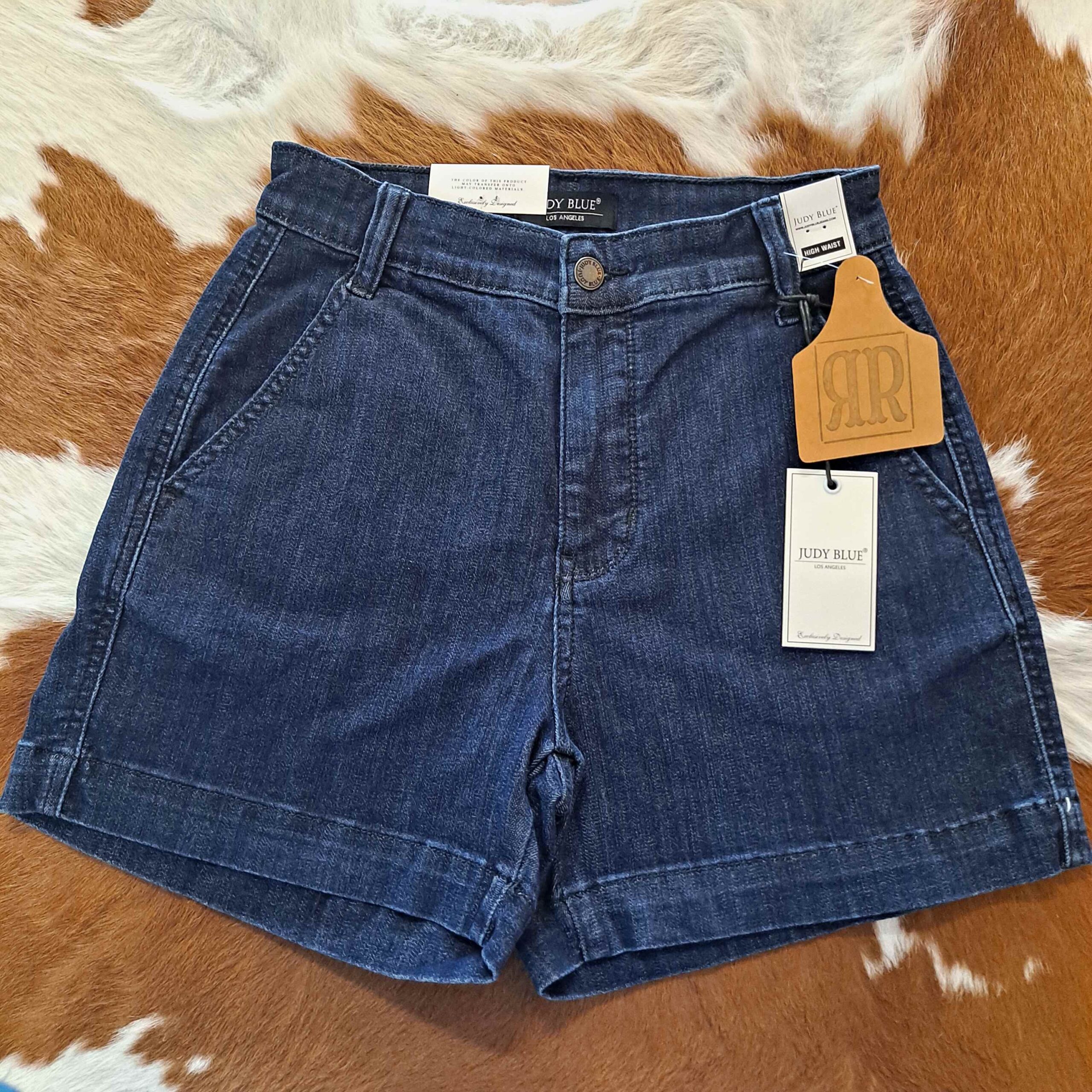 Beverly-High Waisted Denim Trouser Shorts