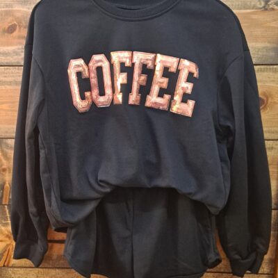 Sequined COFFEE Loose Fit Sweatshirt and Shorts Set with Pockets