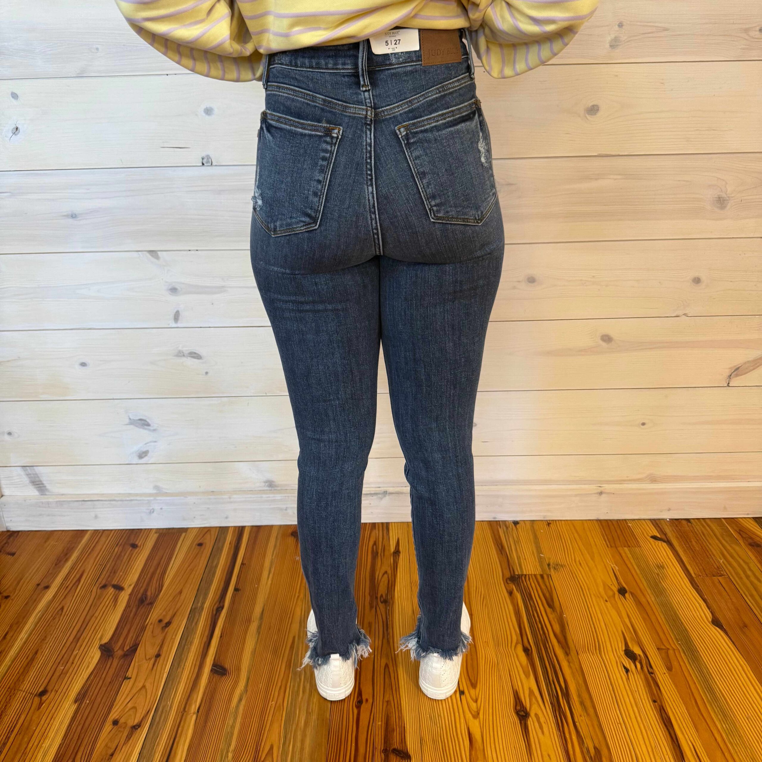 Bobbie-High Waisted Skinny Destroyed with Shark Bit Hem
