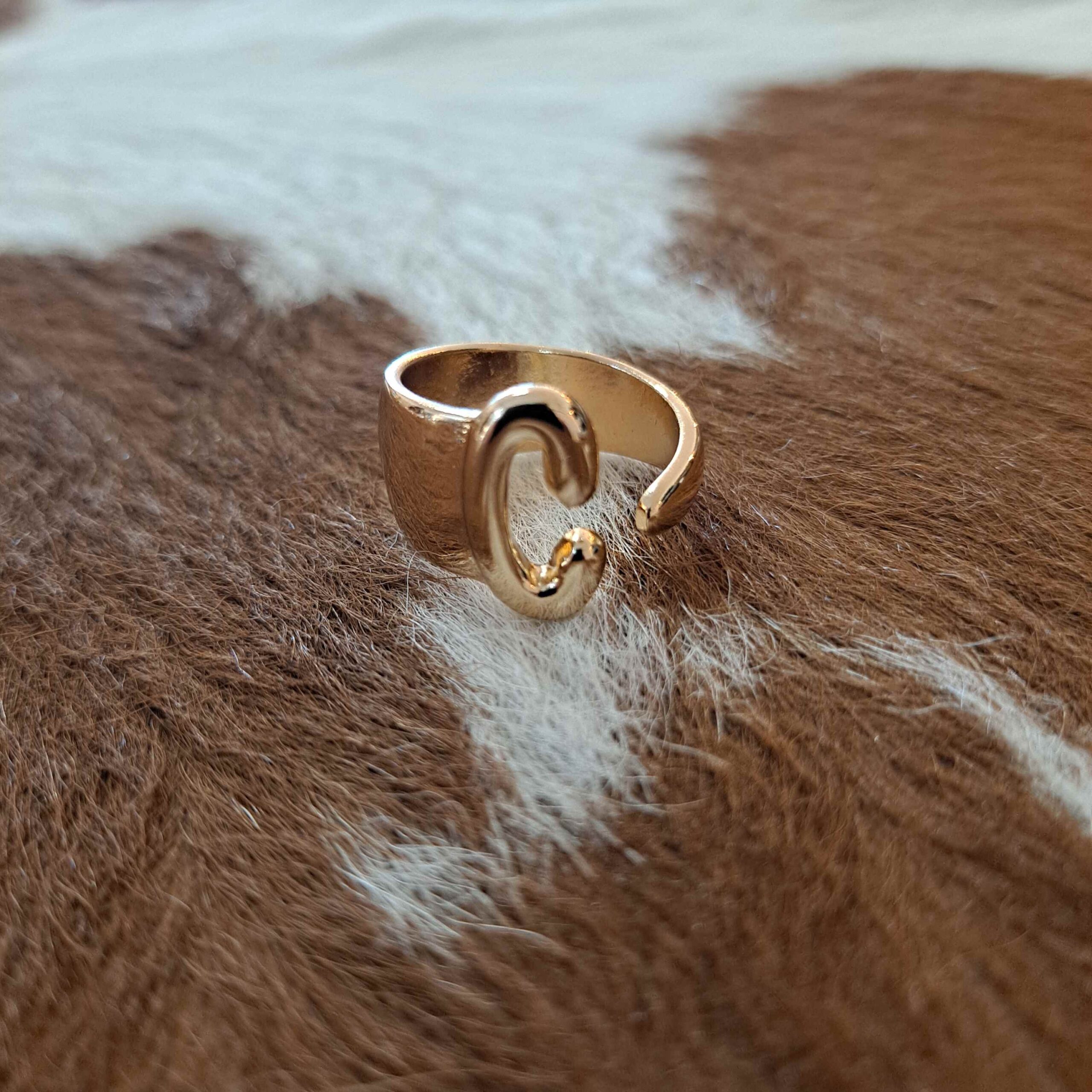 Bubble Design Adjustable Initial Gold Plated Rings