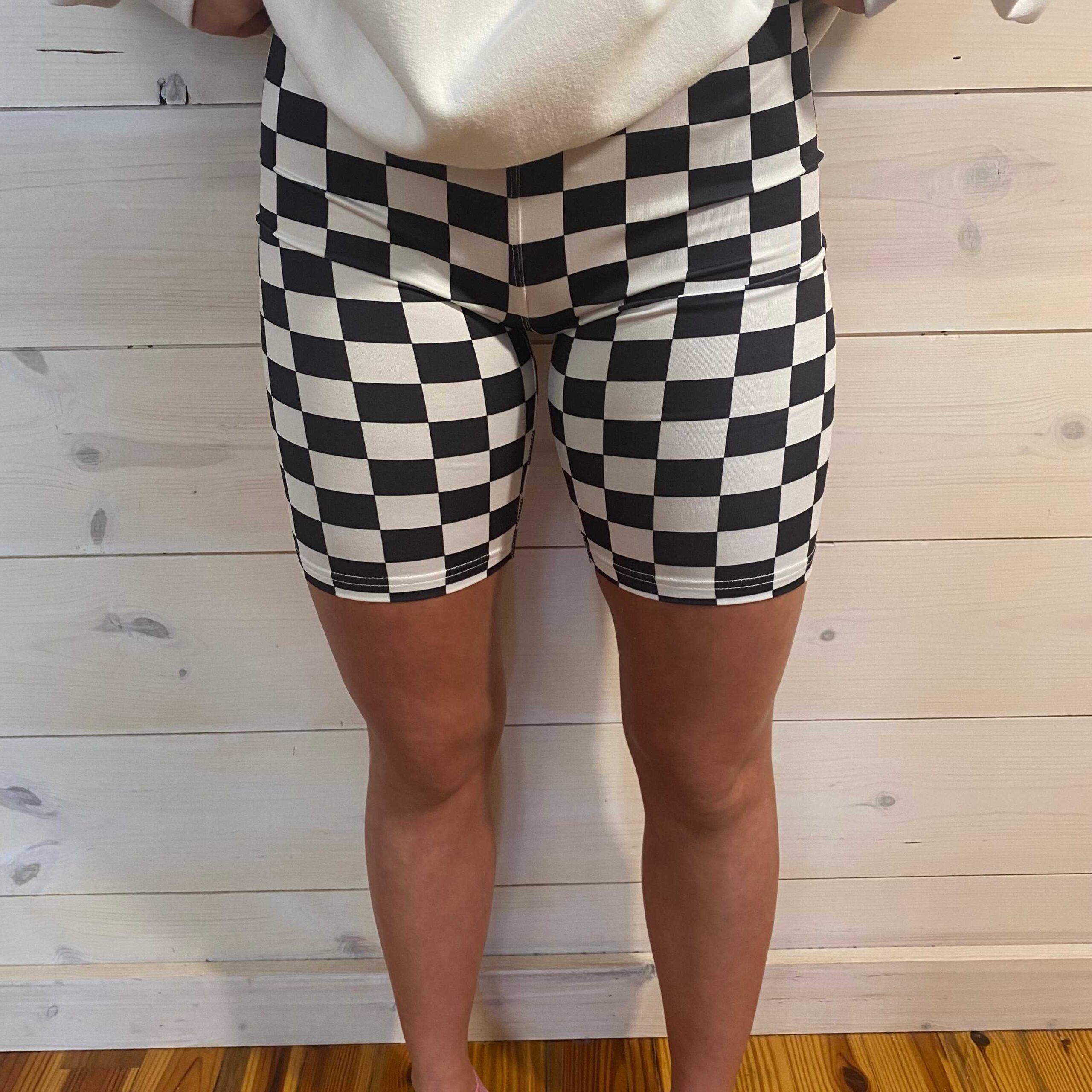 Checkerboard Printed High Waist Biker Shorts