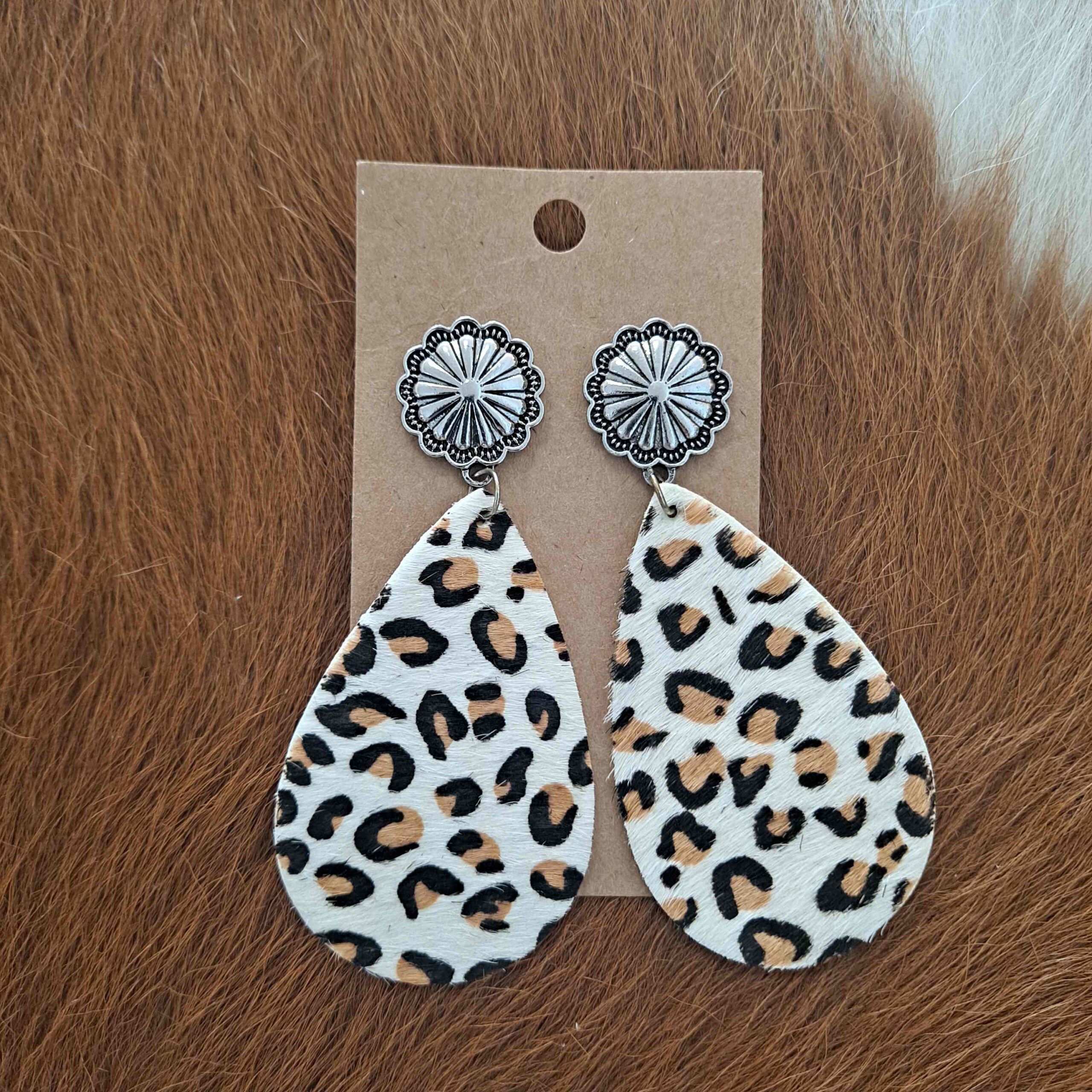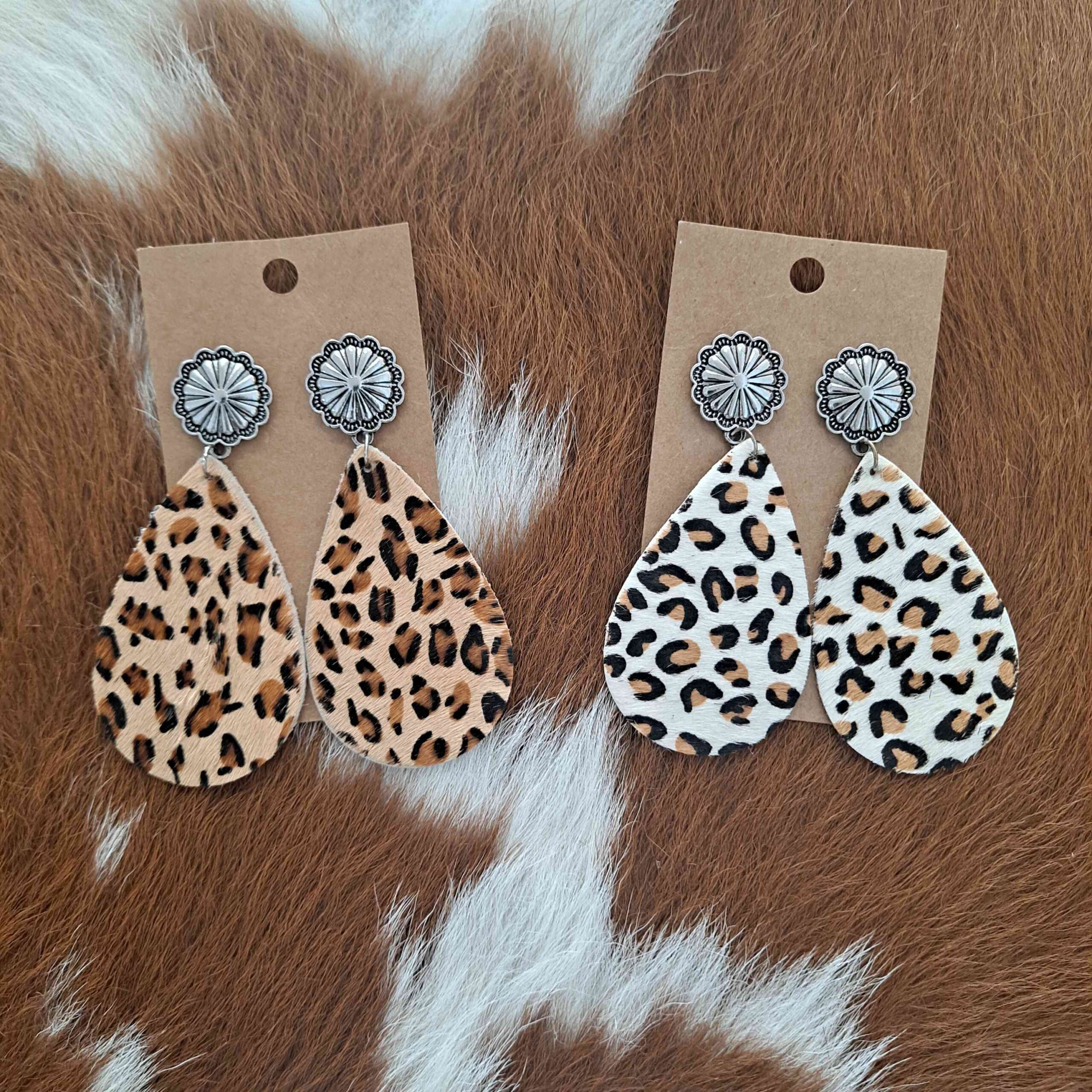 Cheetah Teardrop Post Cloth Earrings quantity