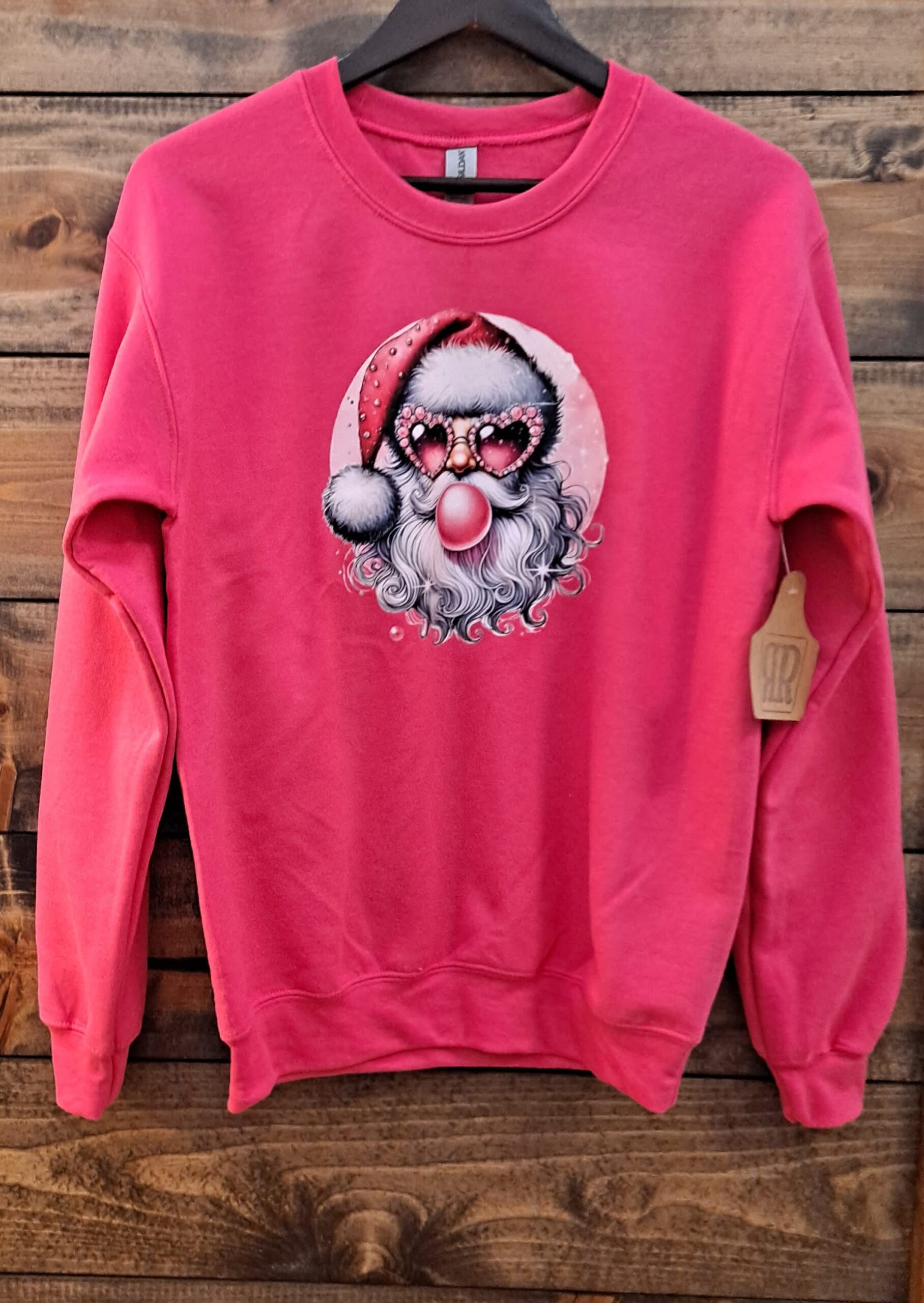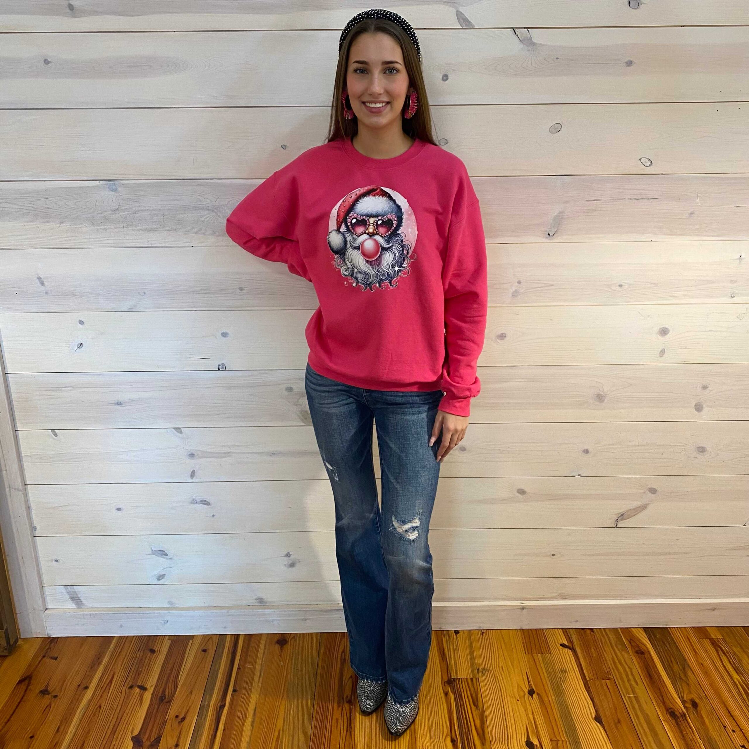 Christmas Pink Santa Blowing Bubblegum Graphic Sweatshirt