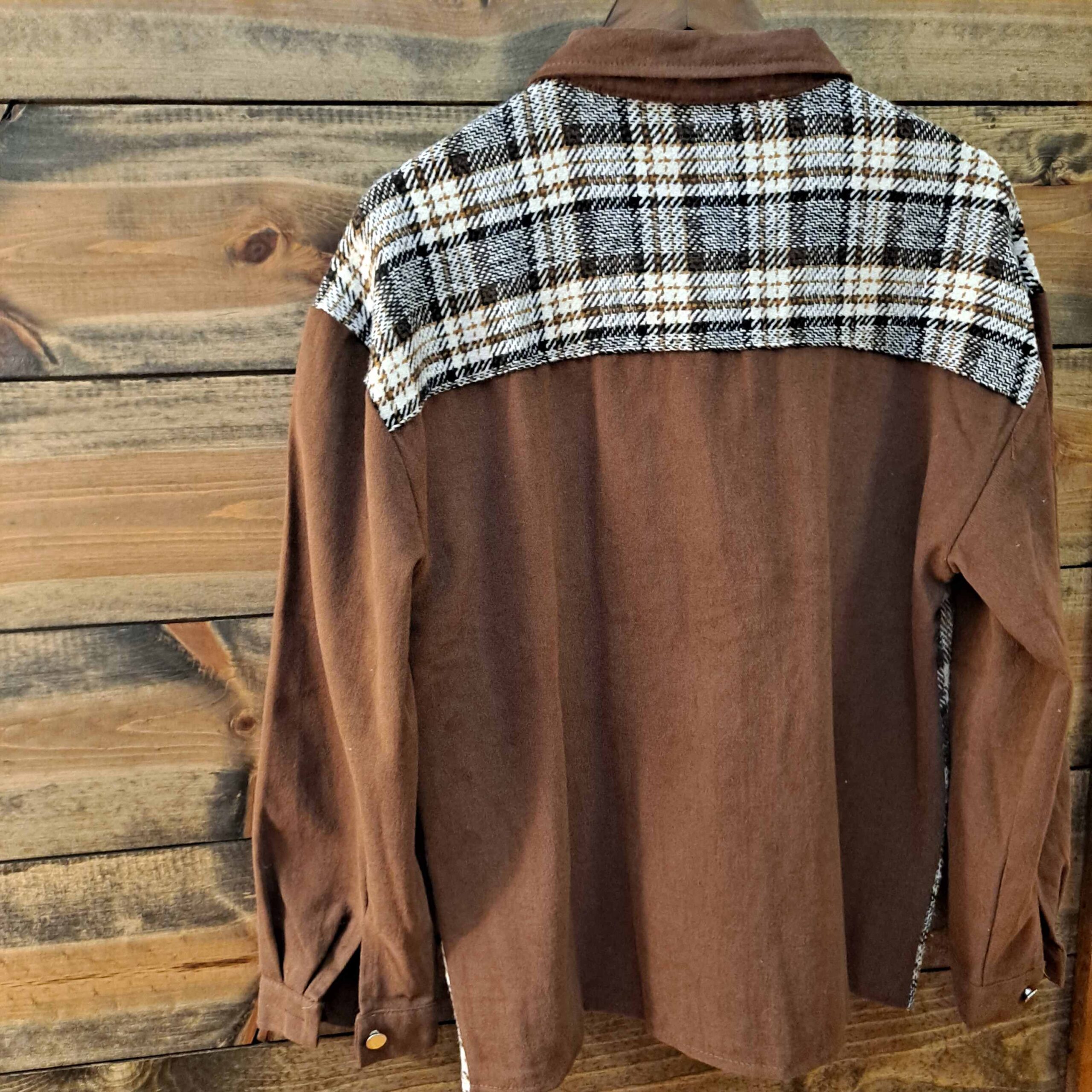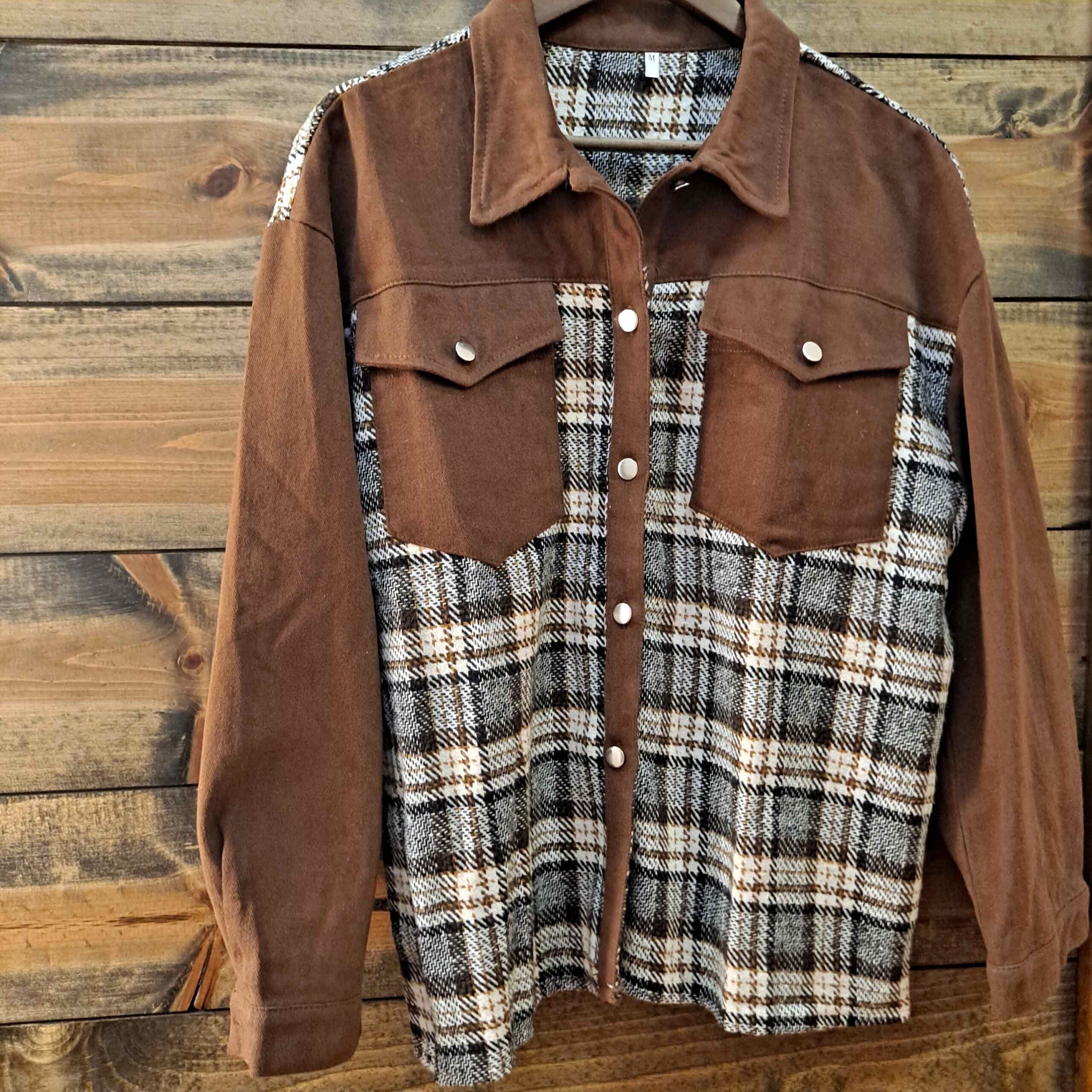 Collared Plaid Splicing Open Button Jacket