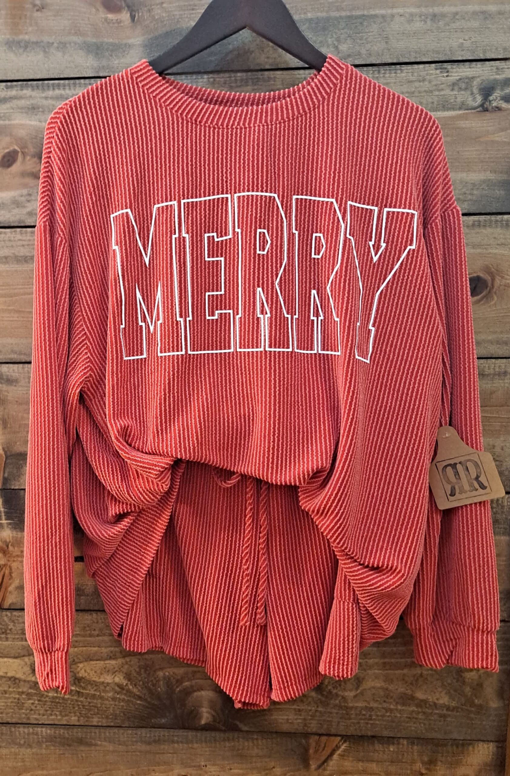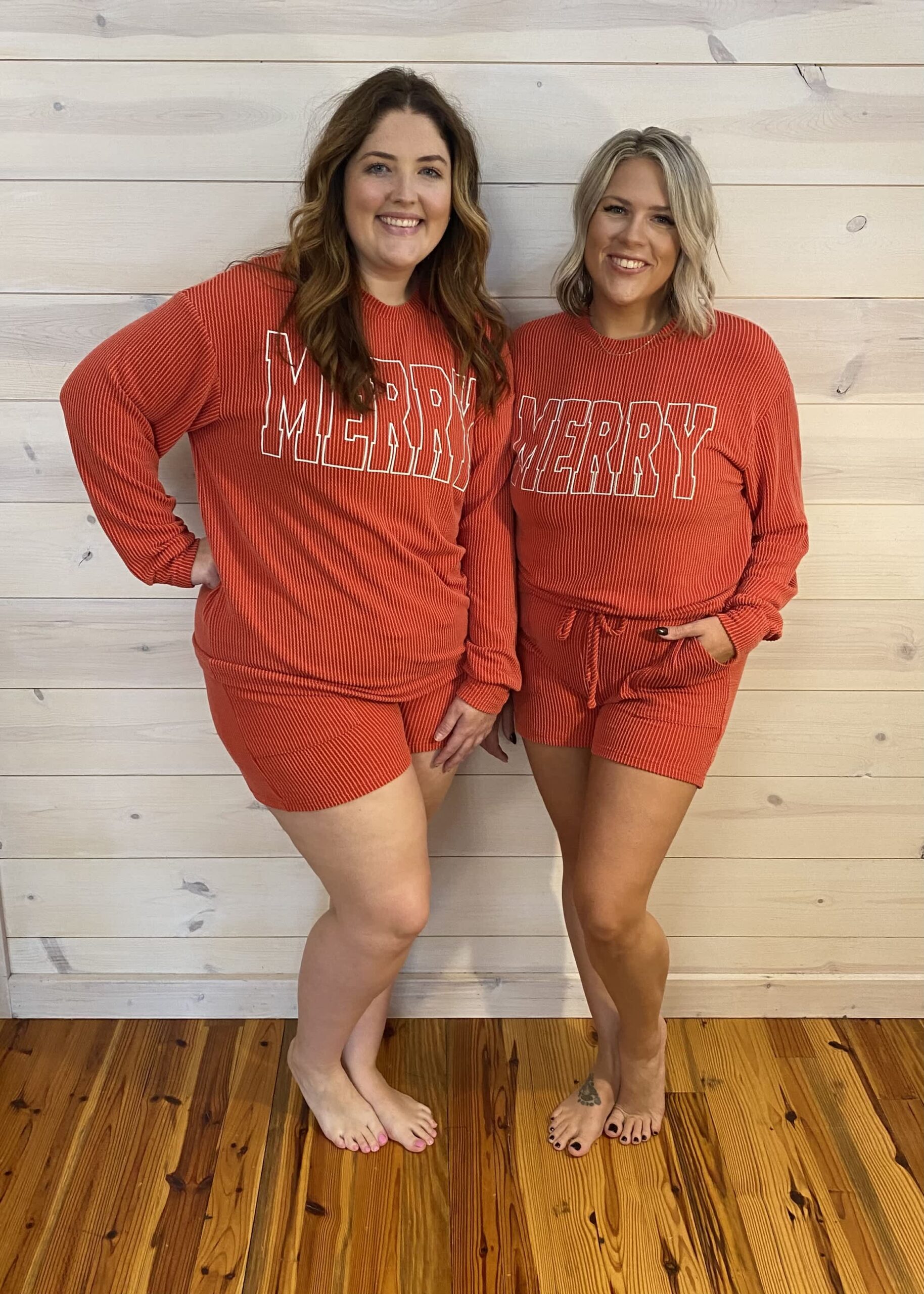Corded MERRY Graphic Long Sleeve Top and Shorts Set