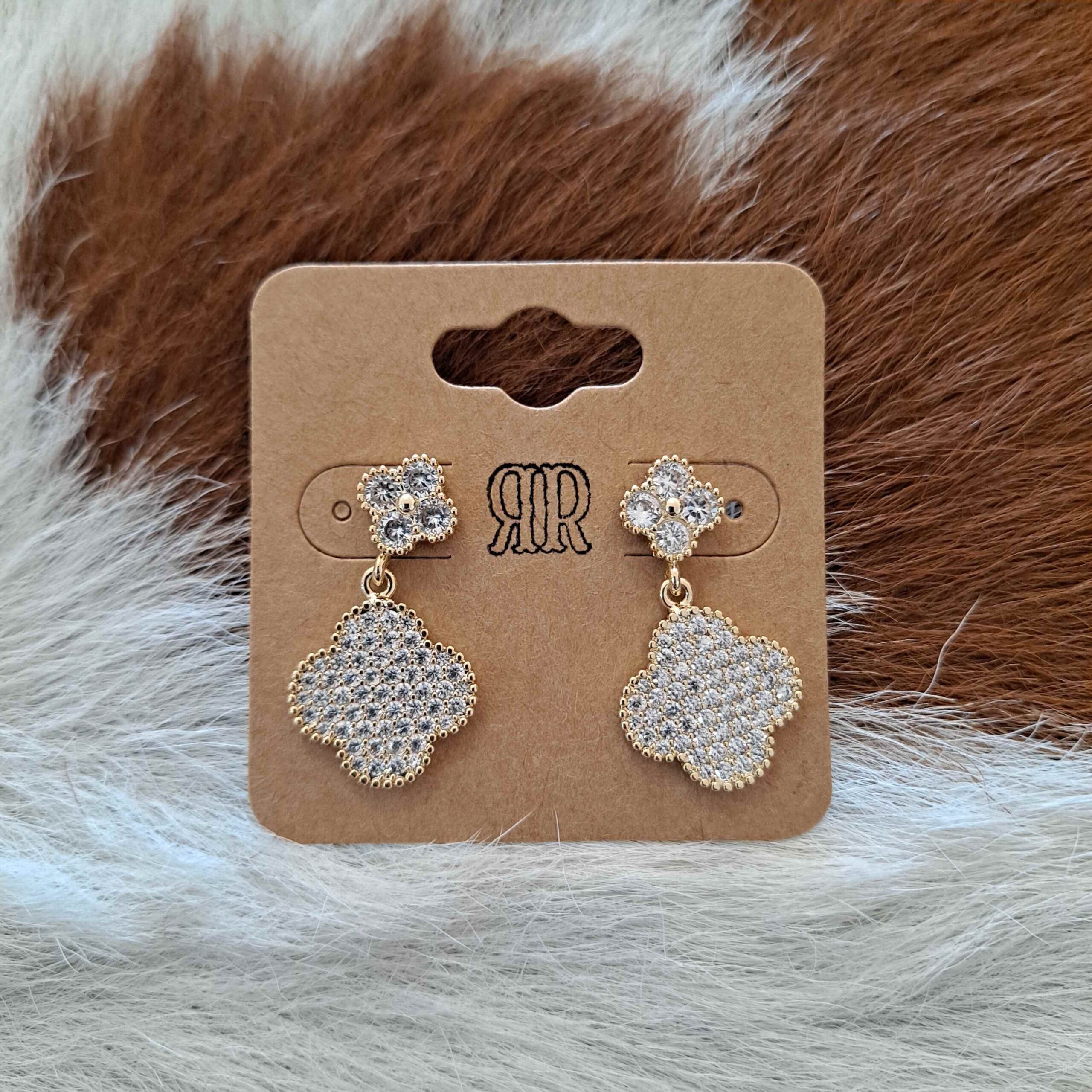 CZ Pave 14K Gold Plated Clovers Pendant Post Earrings