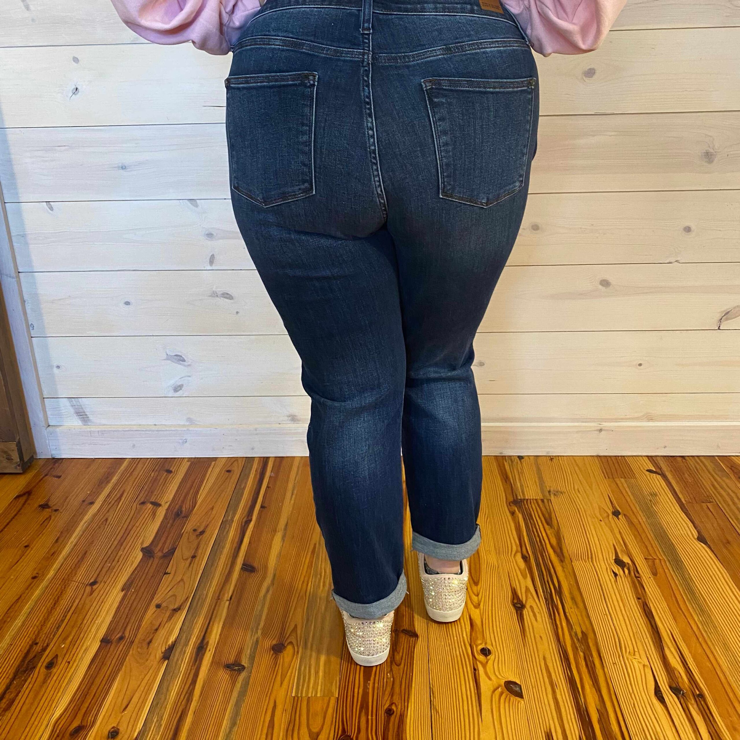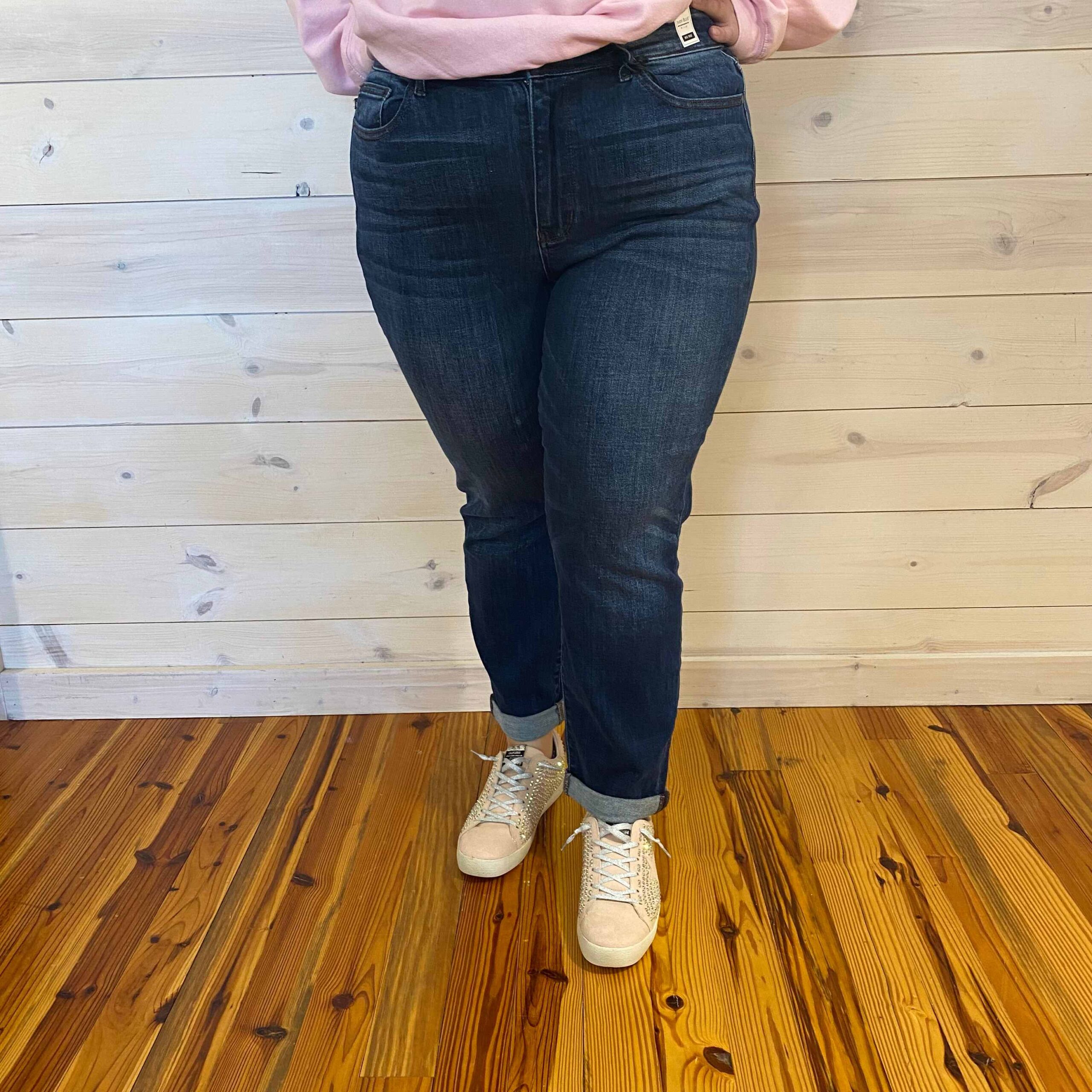 Angie-Mid Rise 4″ Cuff Minimal Destroy Straight (Tall/Long Opt)