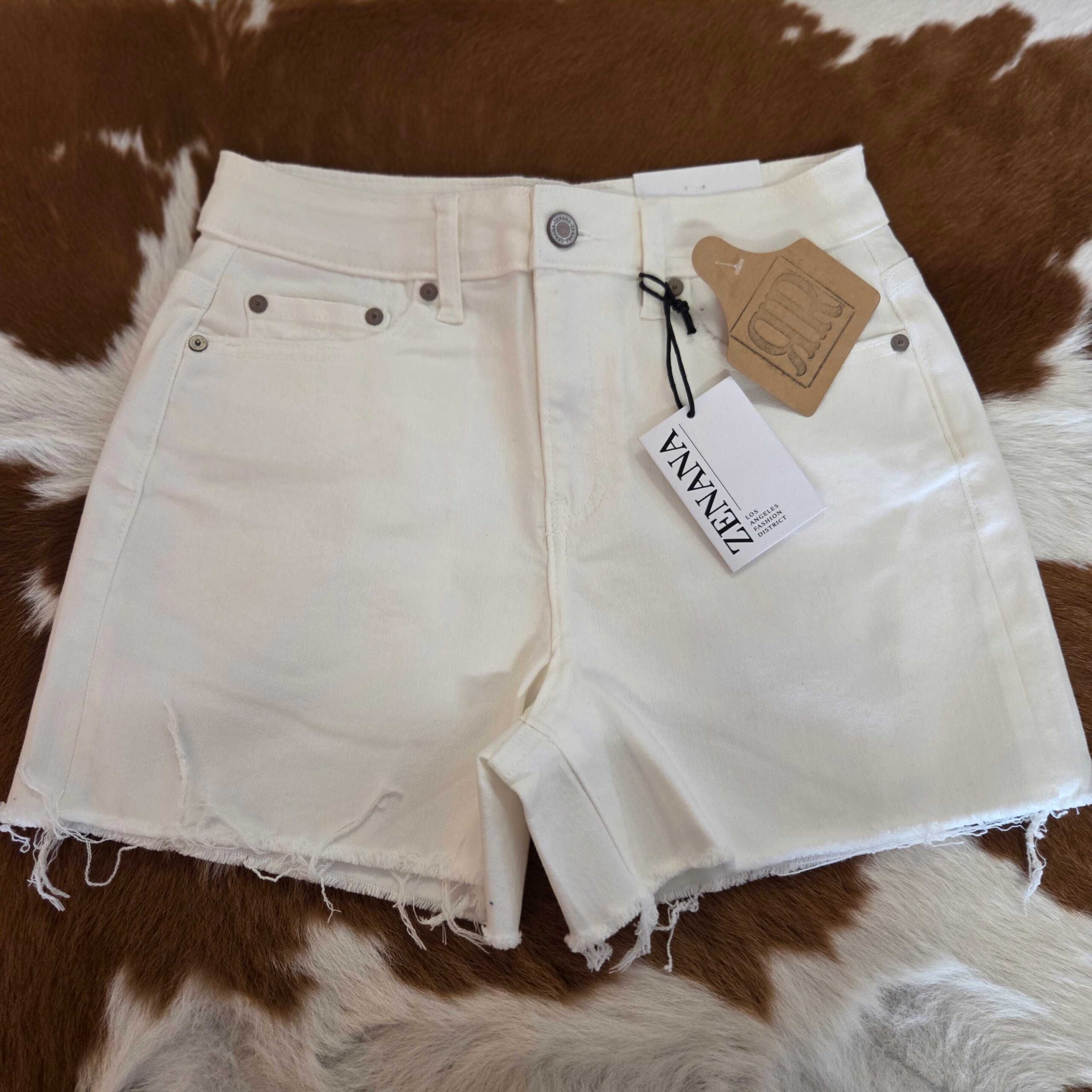 Demi-Raw Hem White Denim Shorts