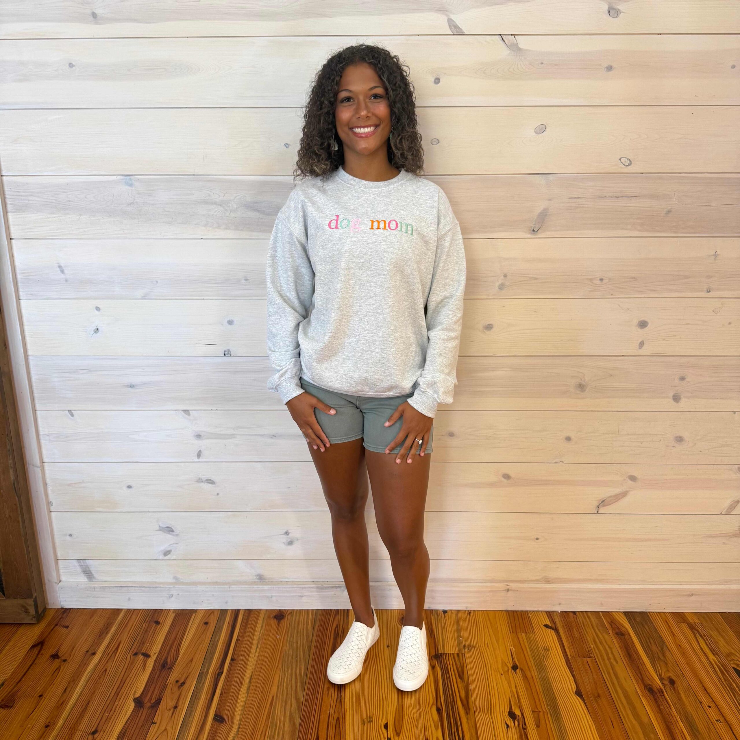 Dog Mom Rainbow Embroidered Graphic Sweatshirt