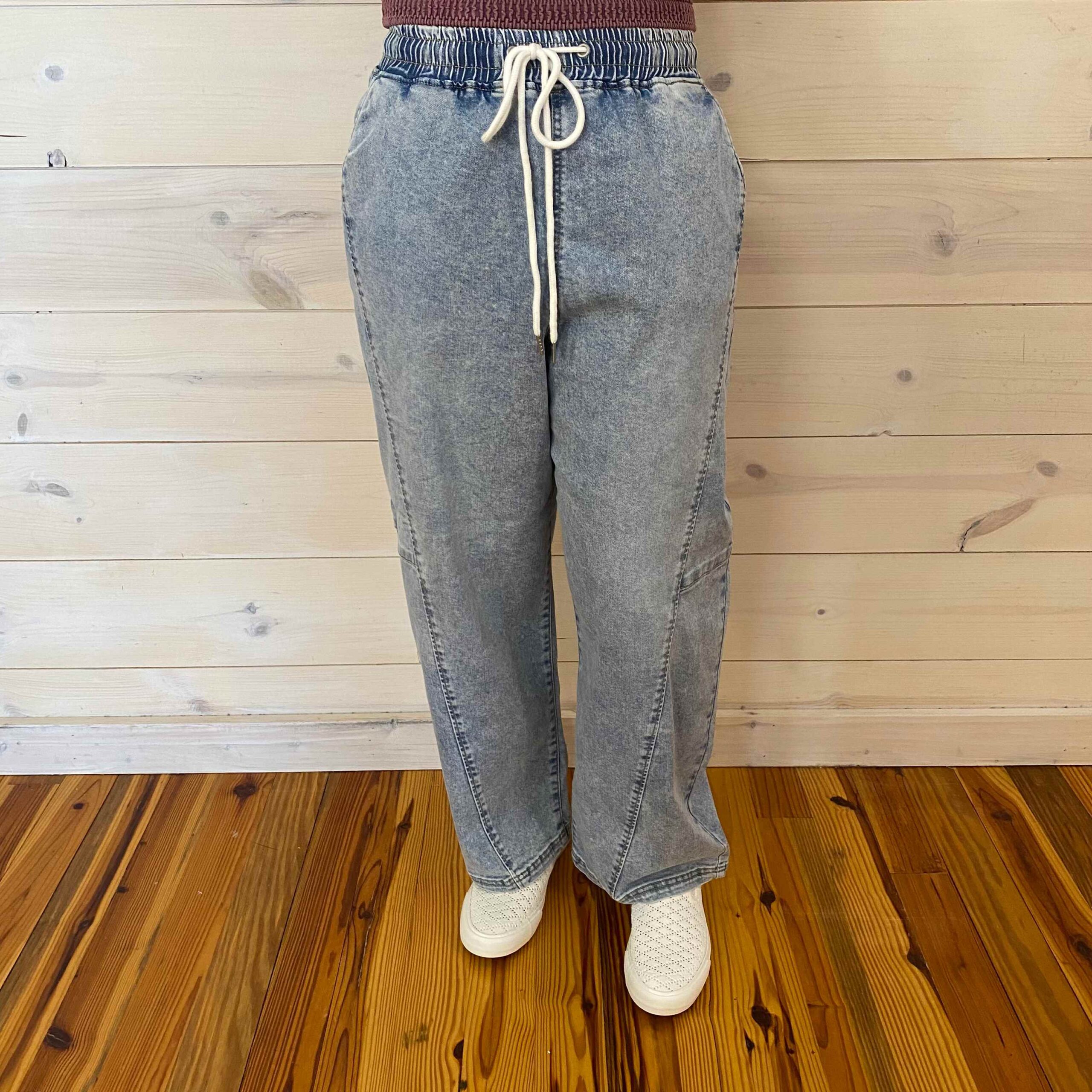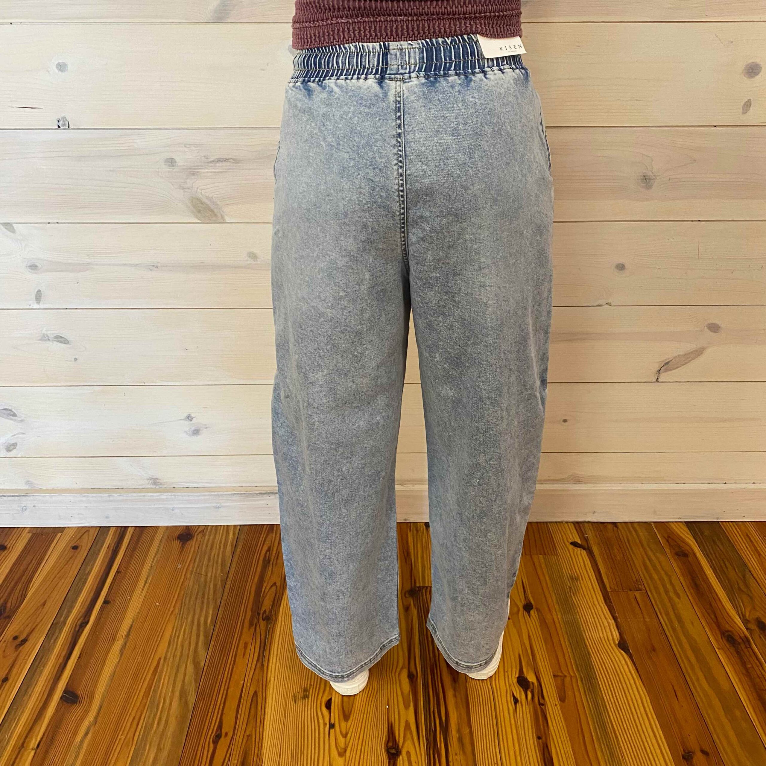 Ellen-Elastic Band Slouchy Cropped Barrel Seam Detail Jeans
