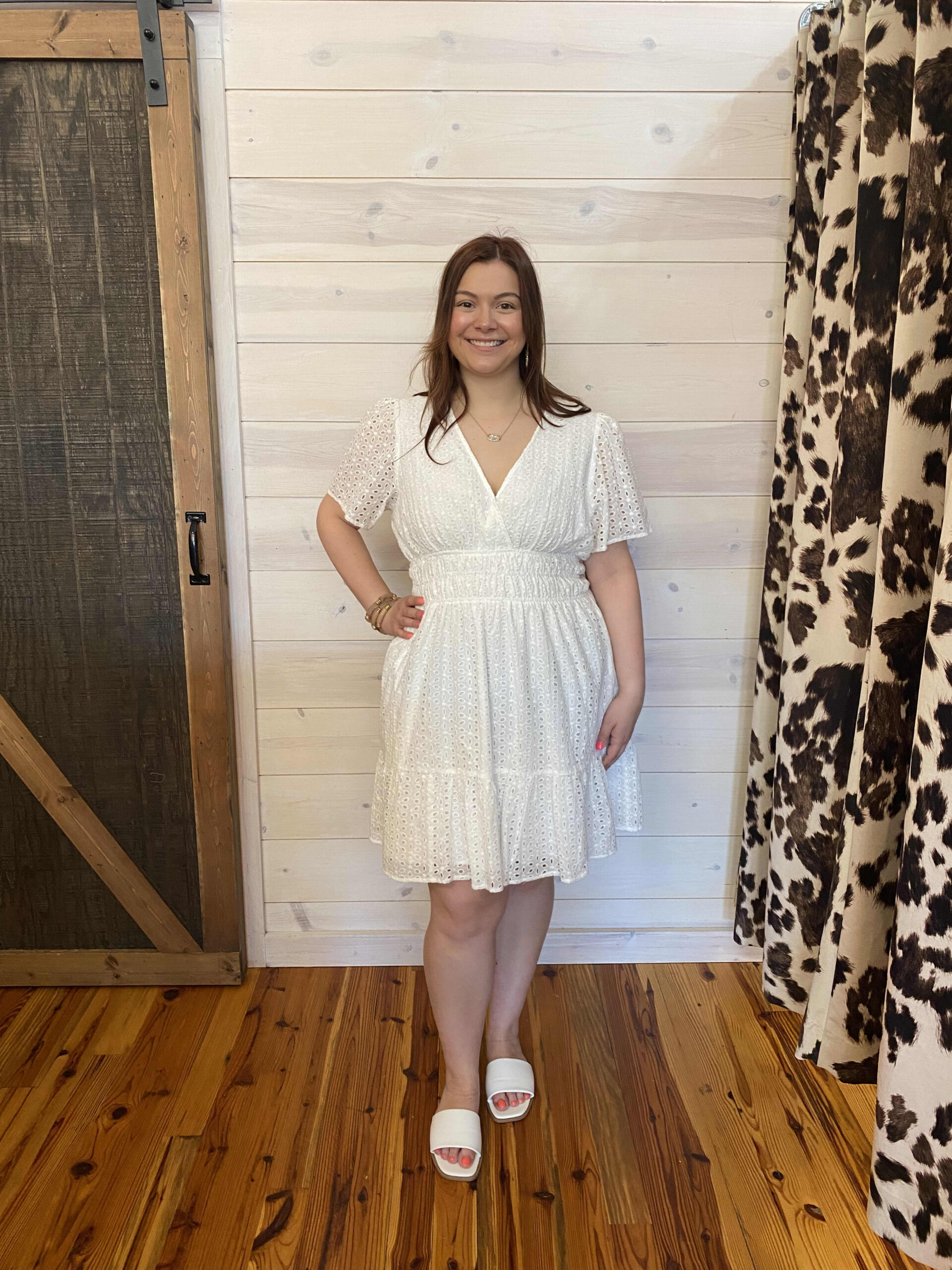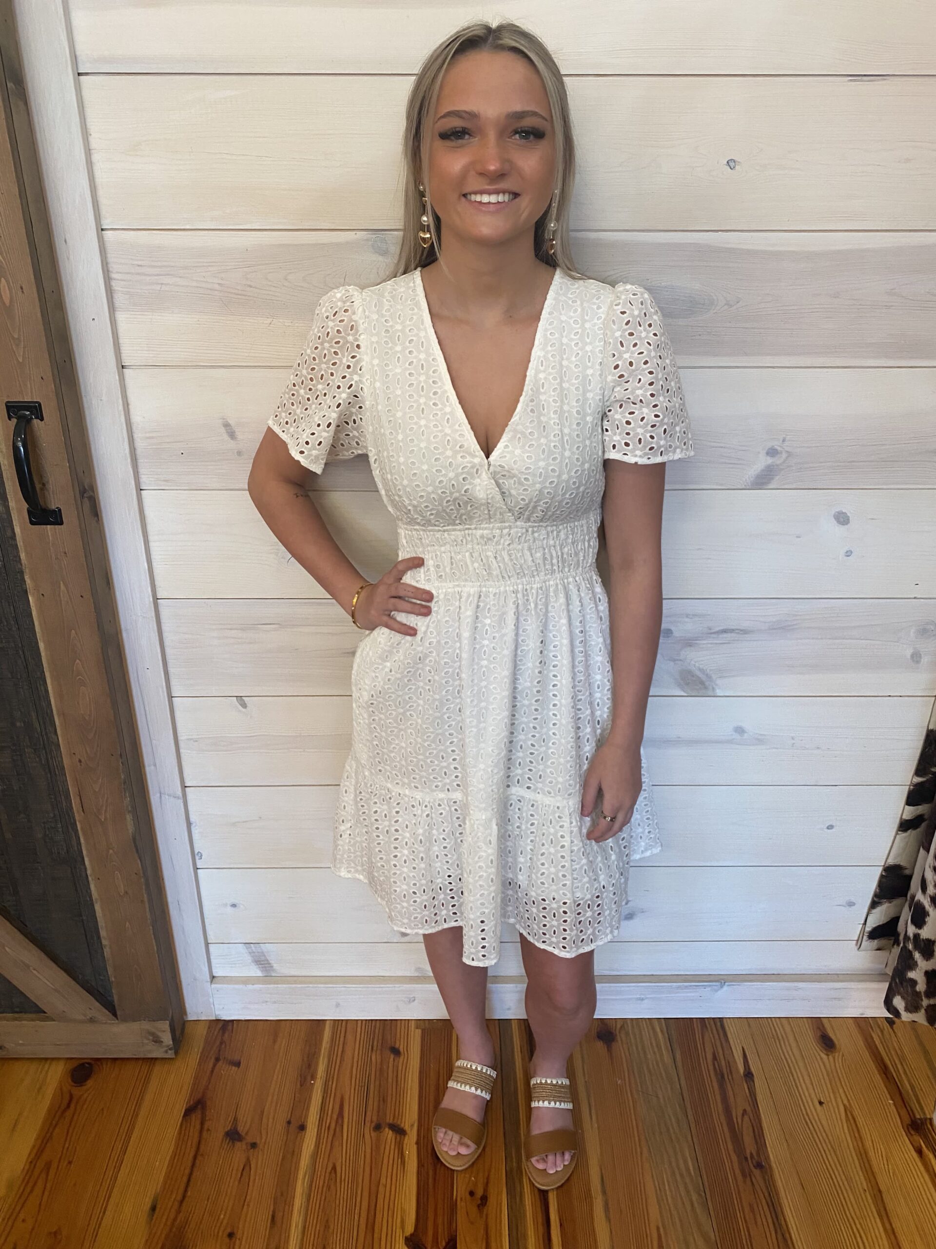 Eyelet Elastic Waist Tiered Dress