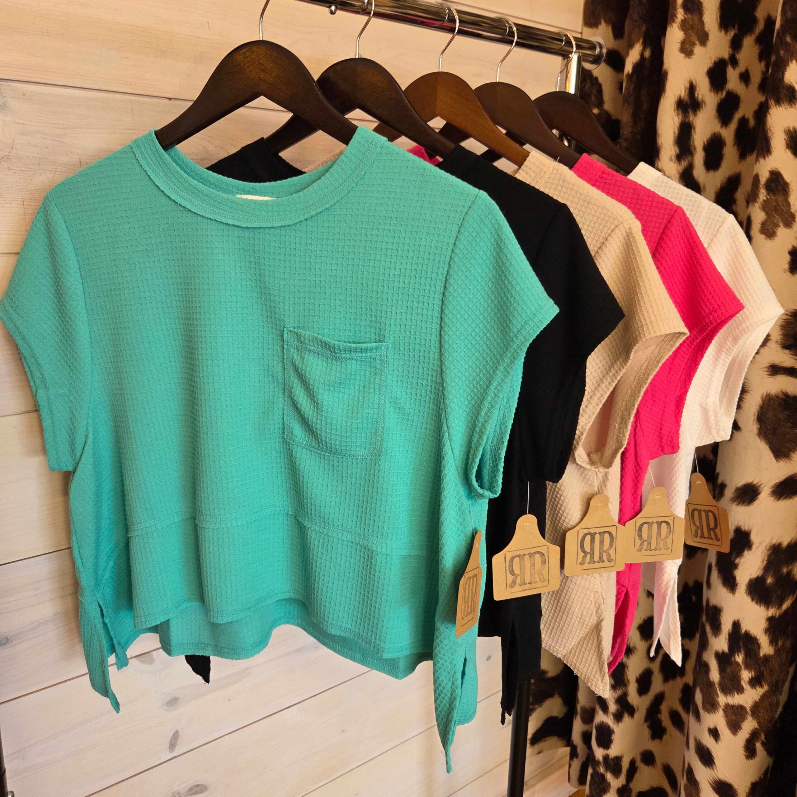Flared Hem Waffle Knit Casual Top