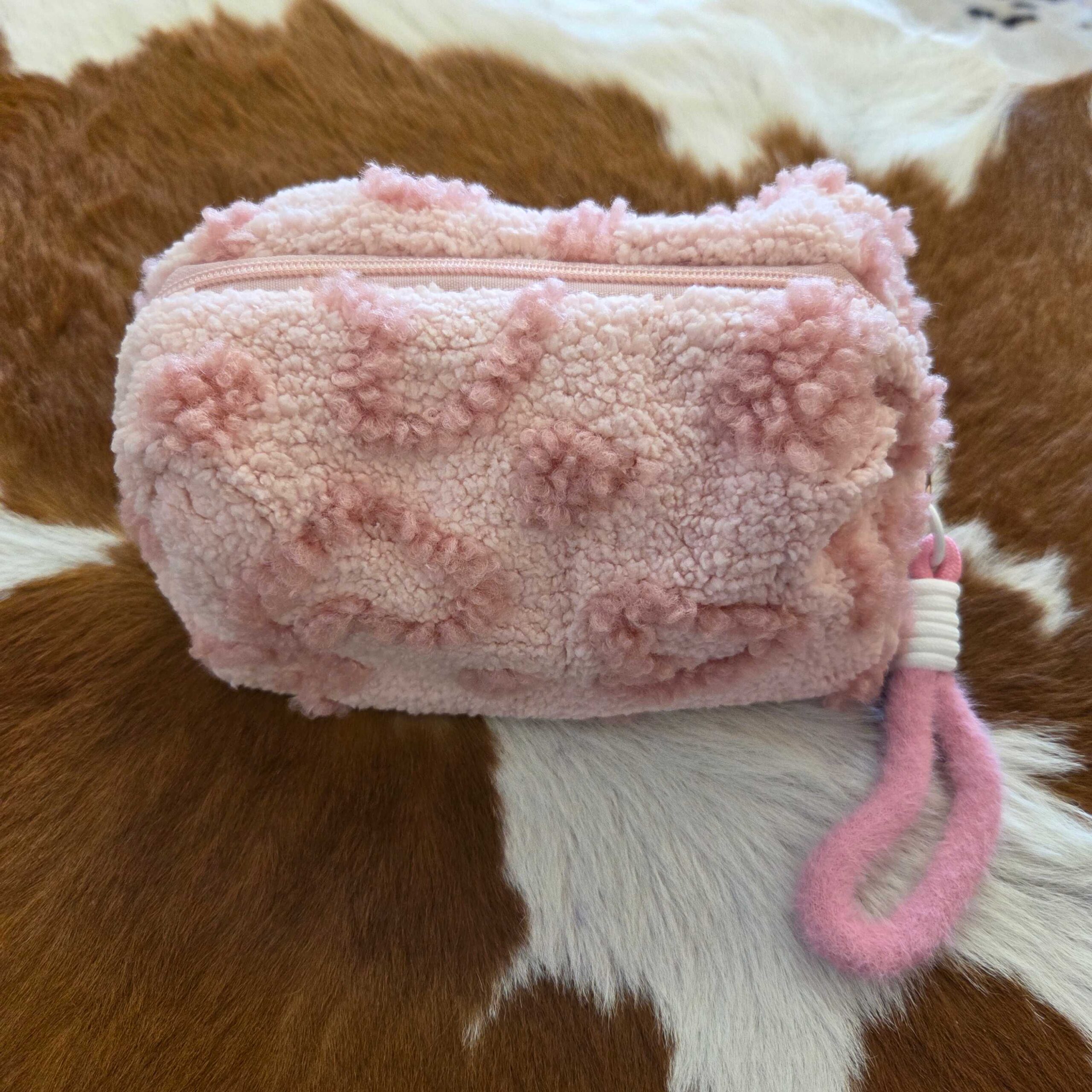 Fleece Heart Sweet Zipper Cosmetic Bag