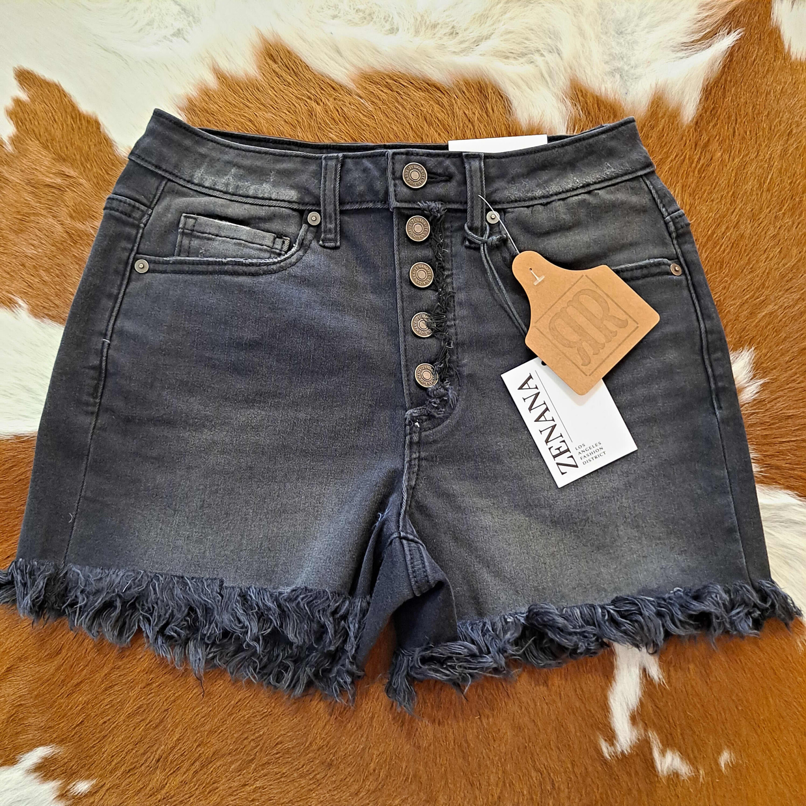 Frayed Hem Button Fly Washed Black Shorts