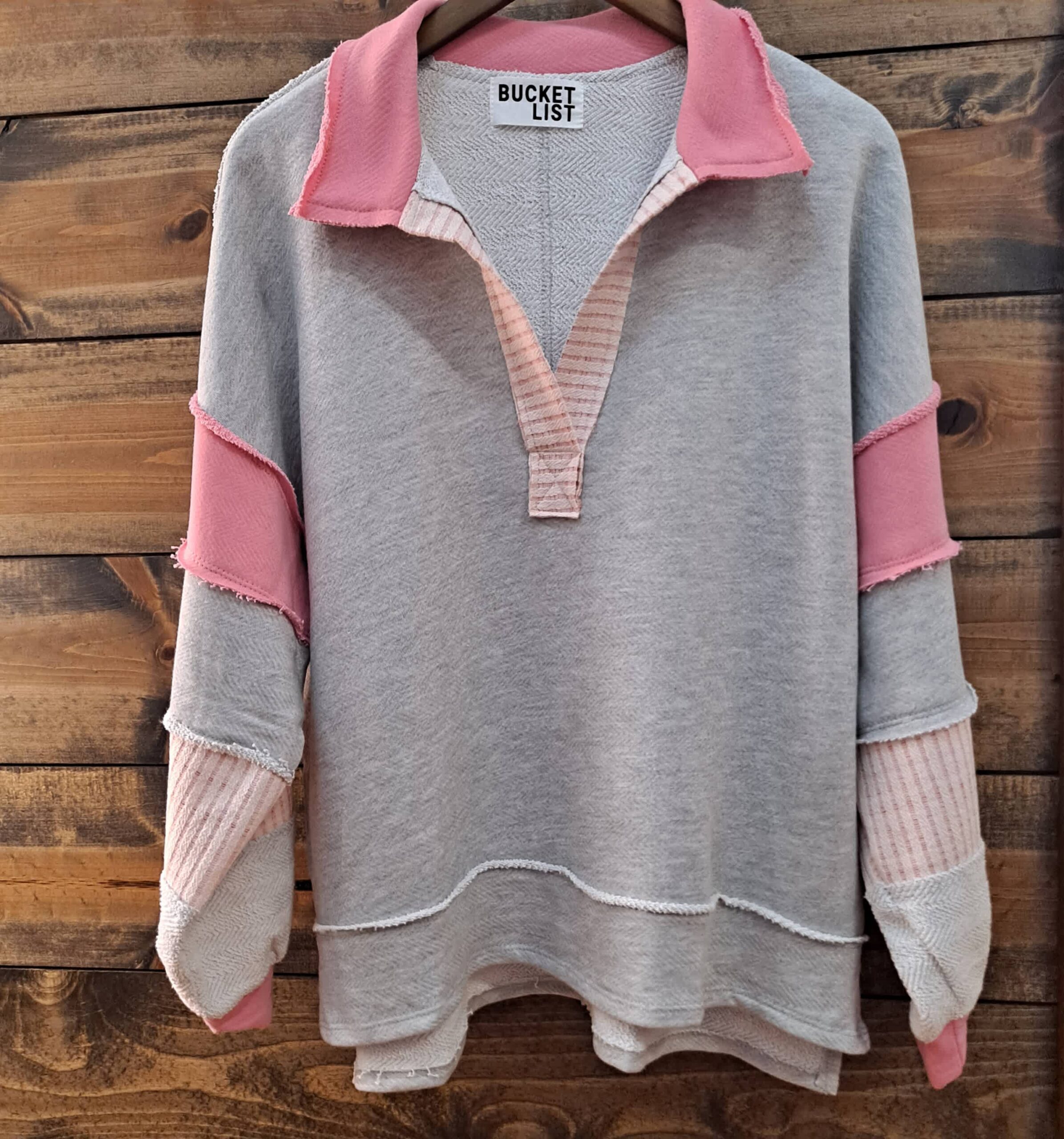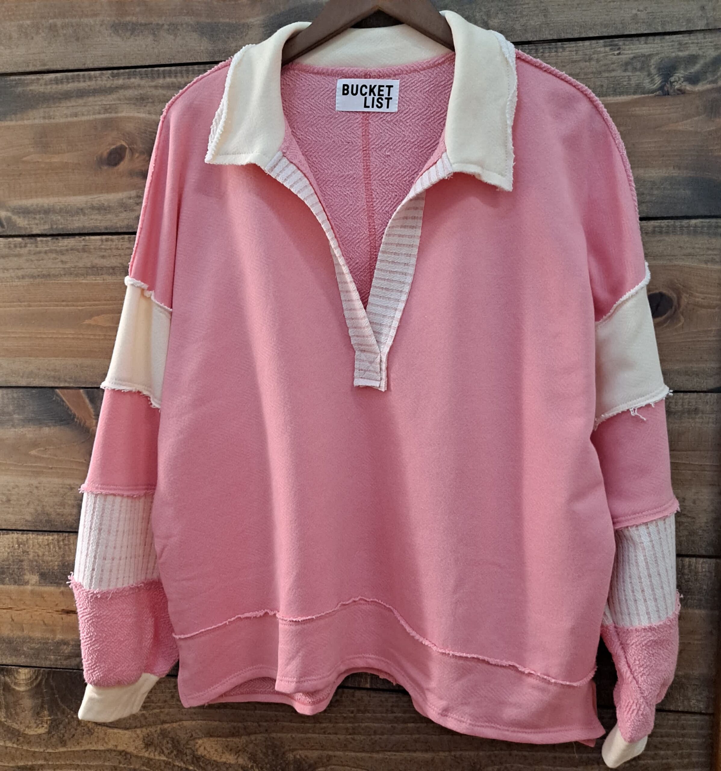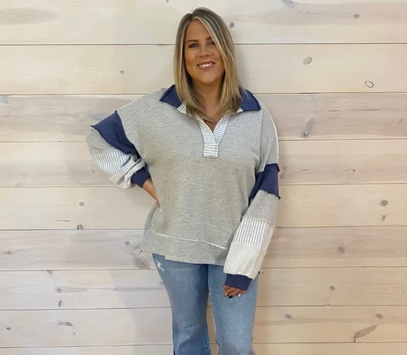 French Terry Knit Color Block Collared Loose Fit Top