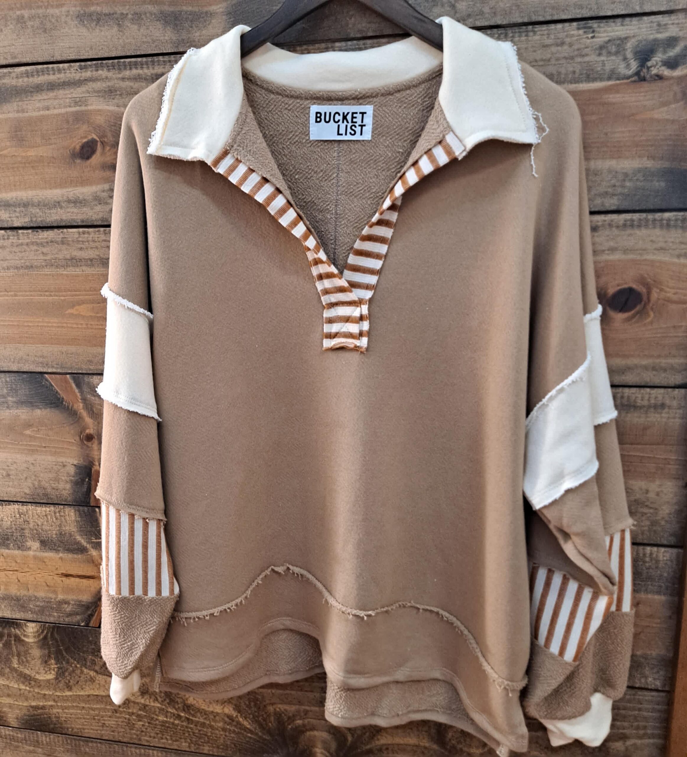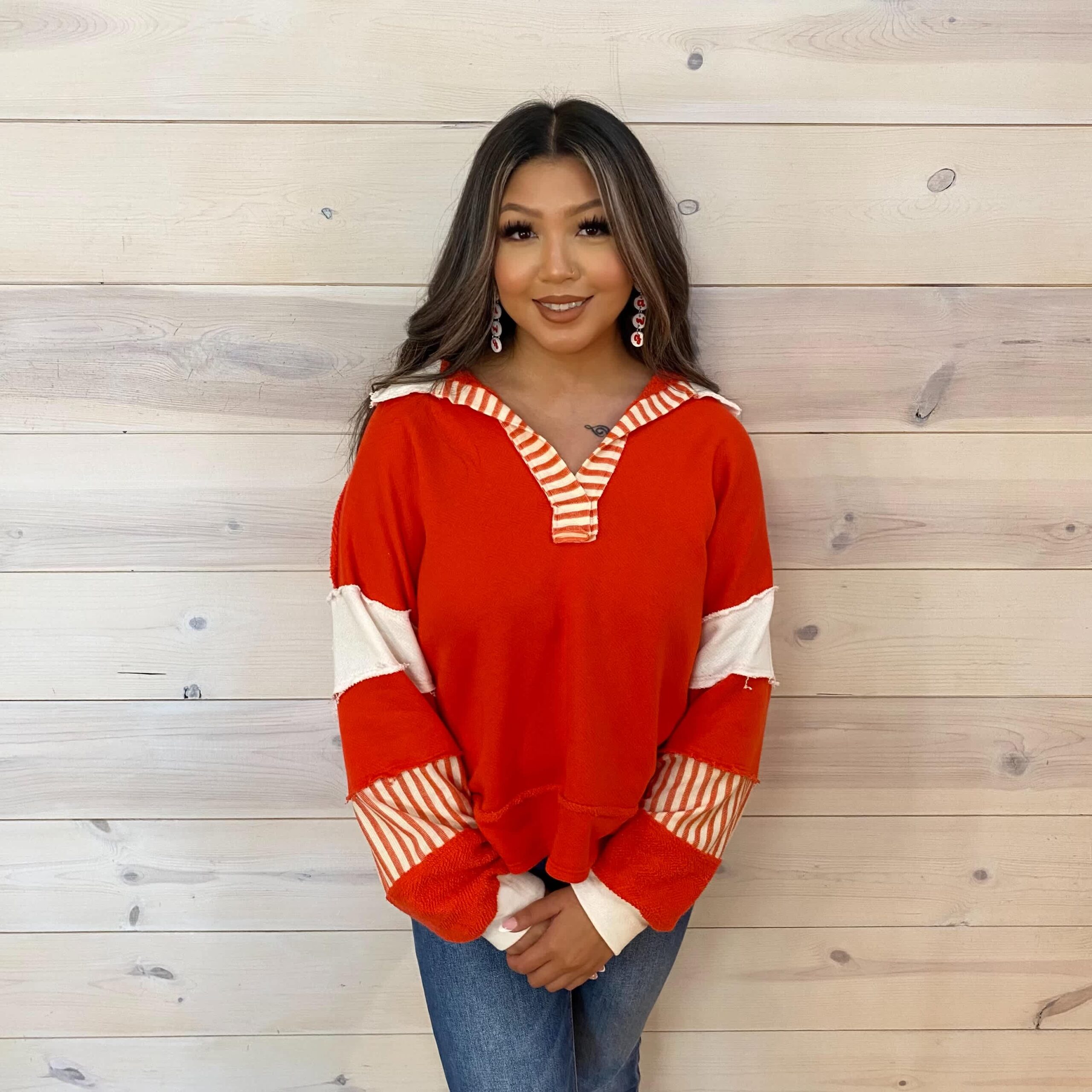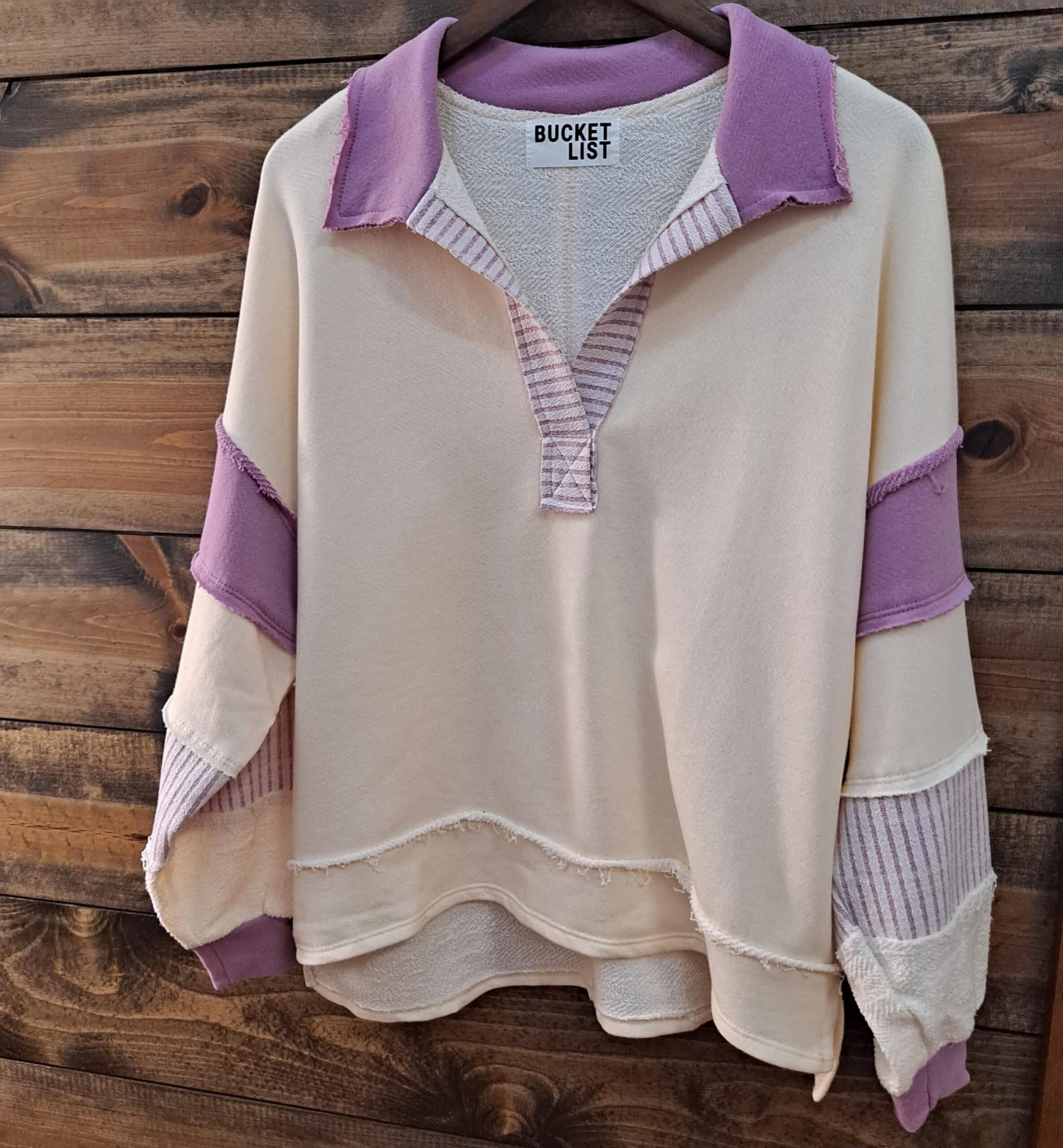 French Terry Knit Color Block Collared Loose Fit Top