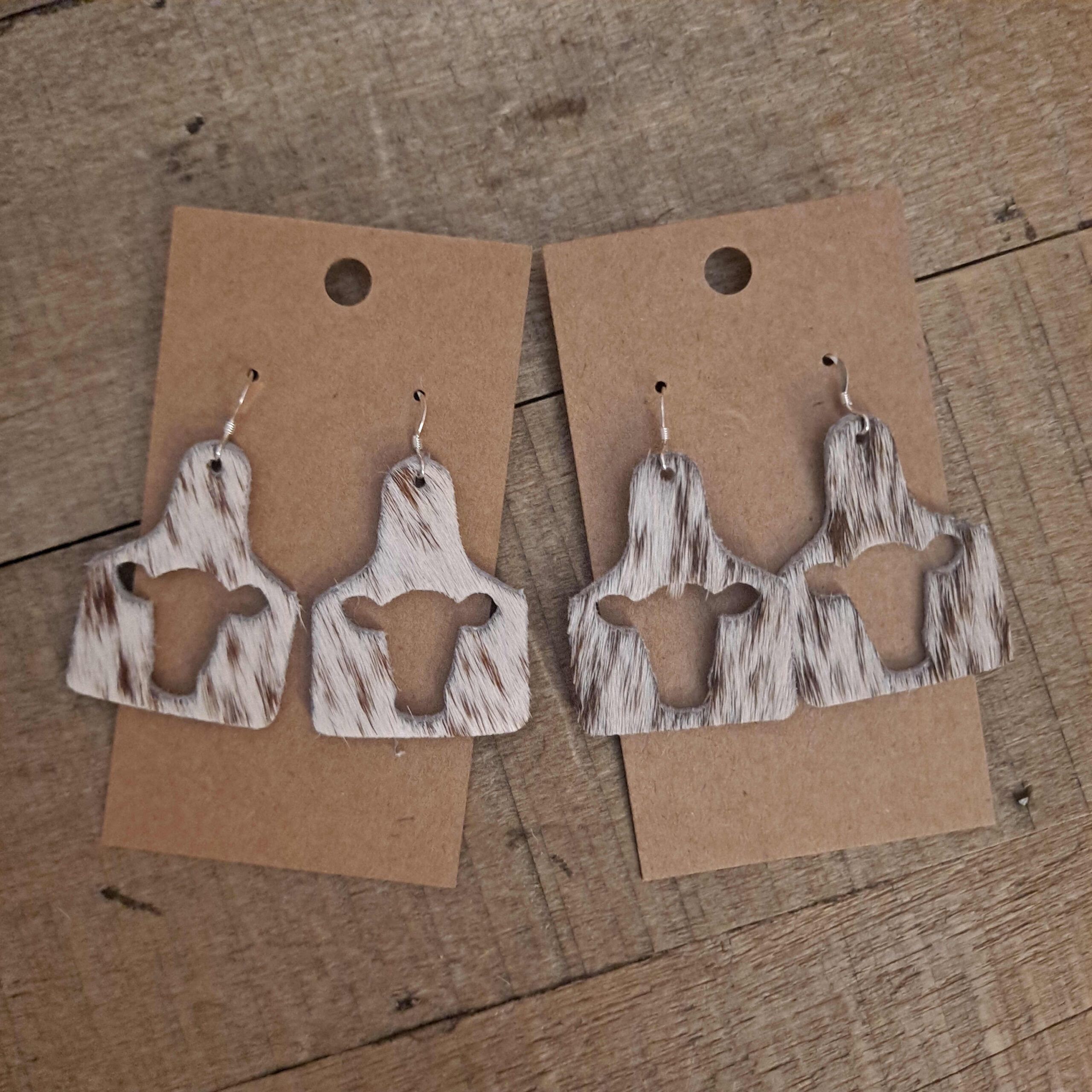 Genuine Cowhide Cow Tag Earrings