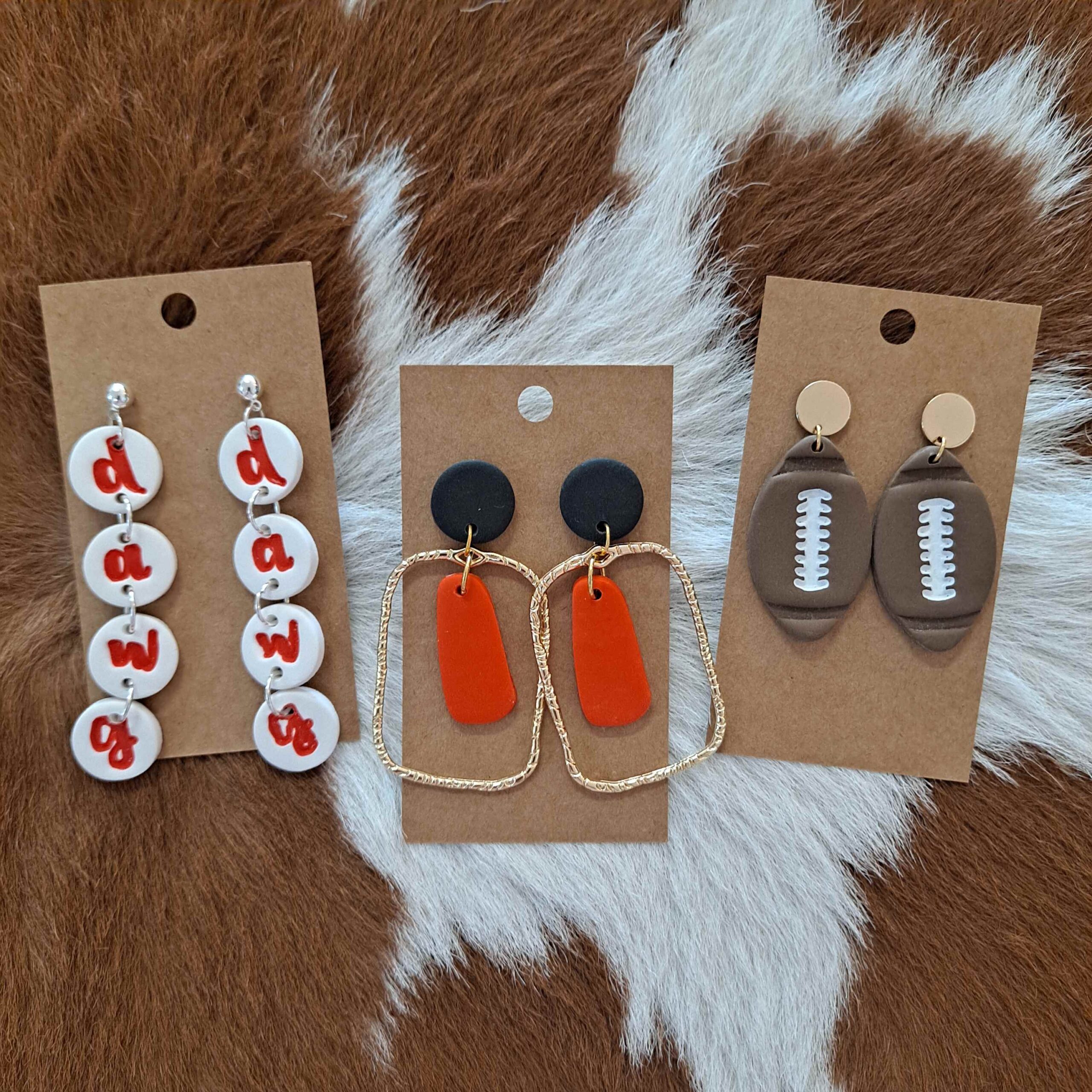 Georgia Dawgs Game Day Handmade Polymer Clay Dangling Post Earrings