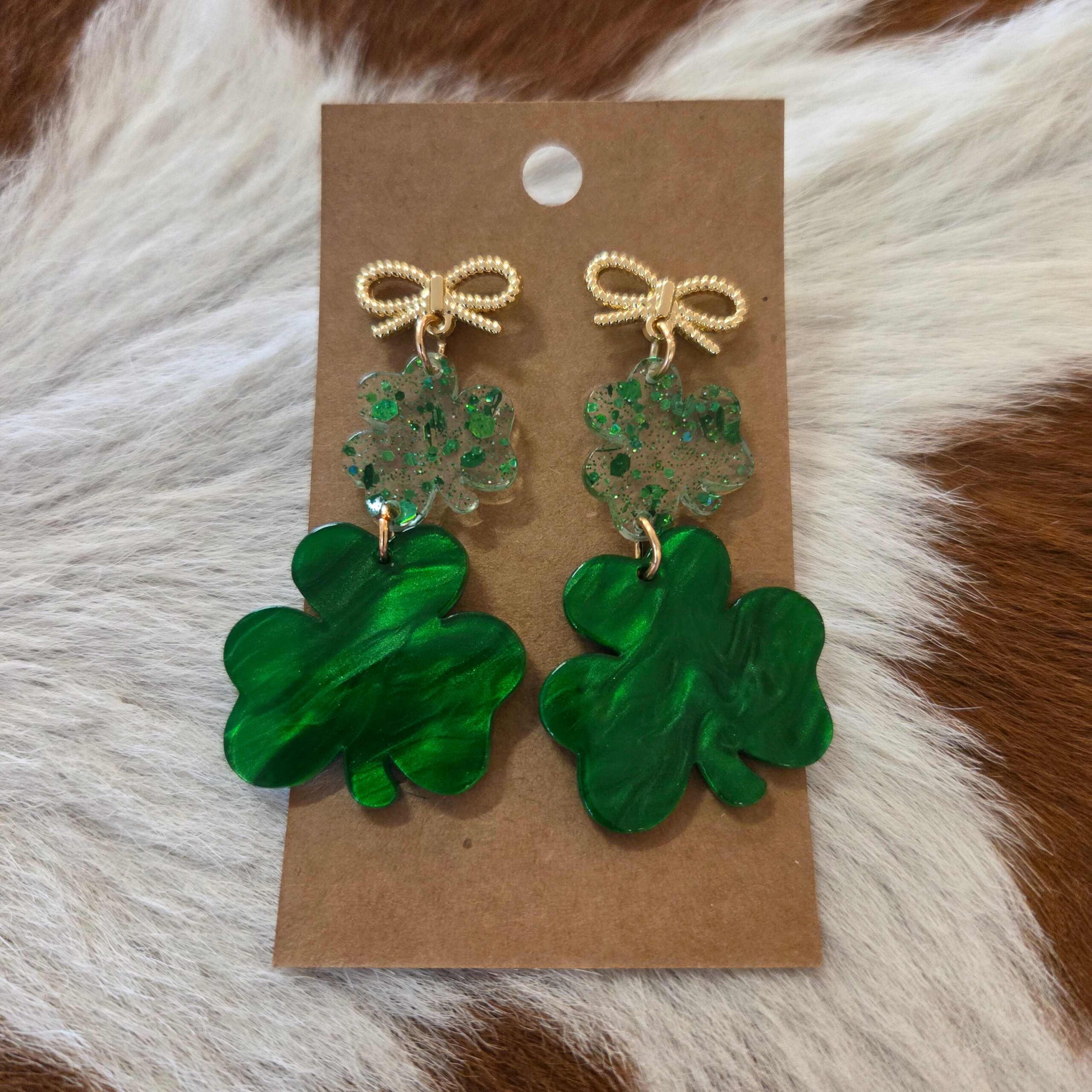 Glitzy Gold Bow Shamrock St. Patrick's Day Post Earrings quantity