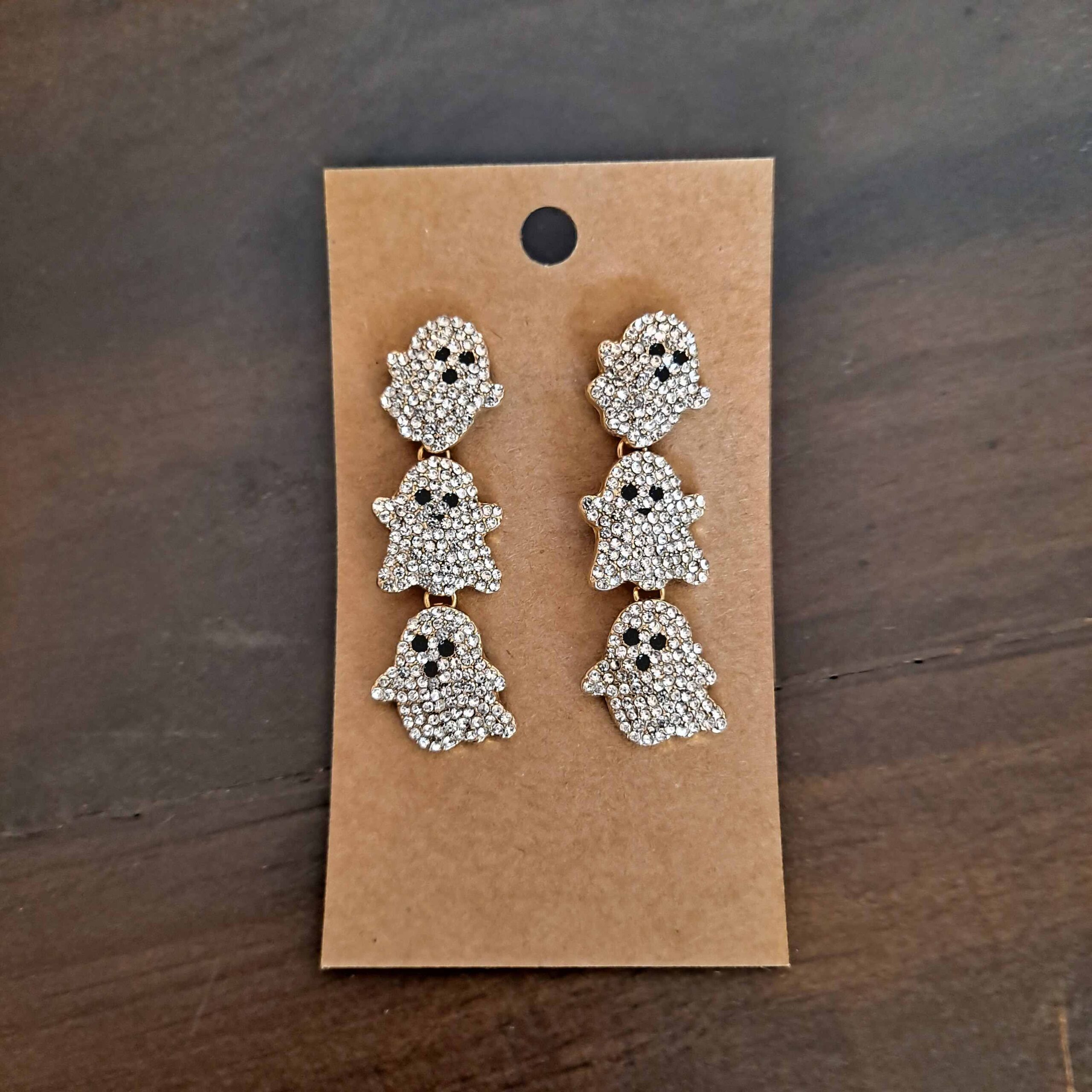 Halloween Linked Ghosts Rhinestones Dangling Earrings