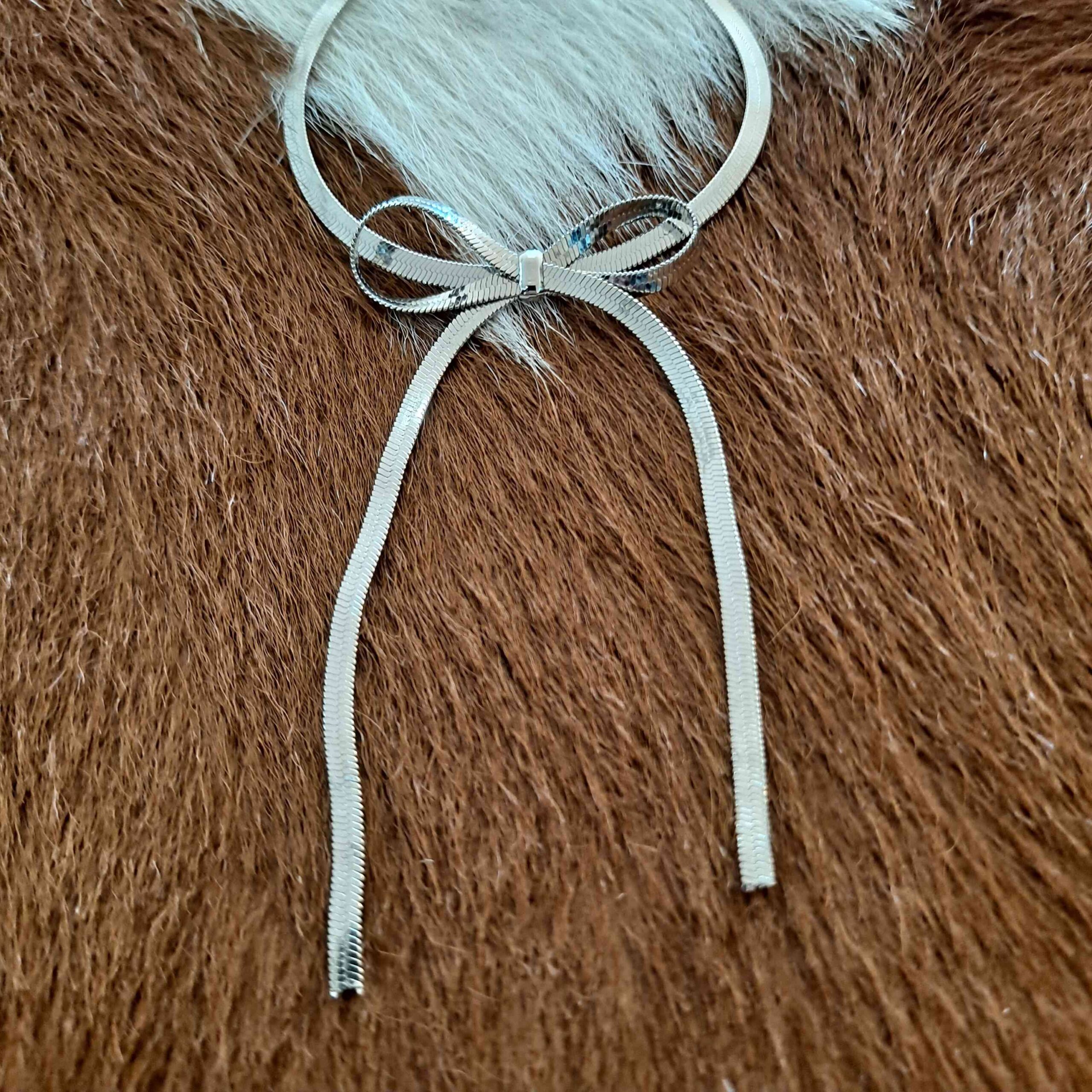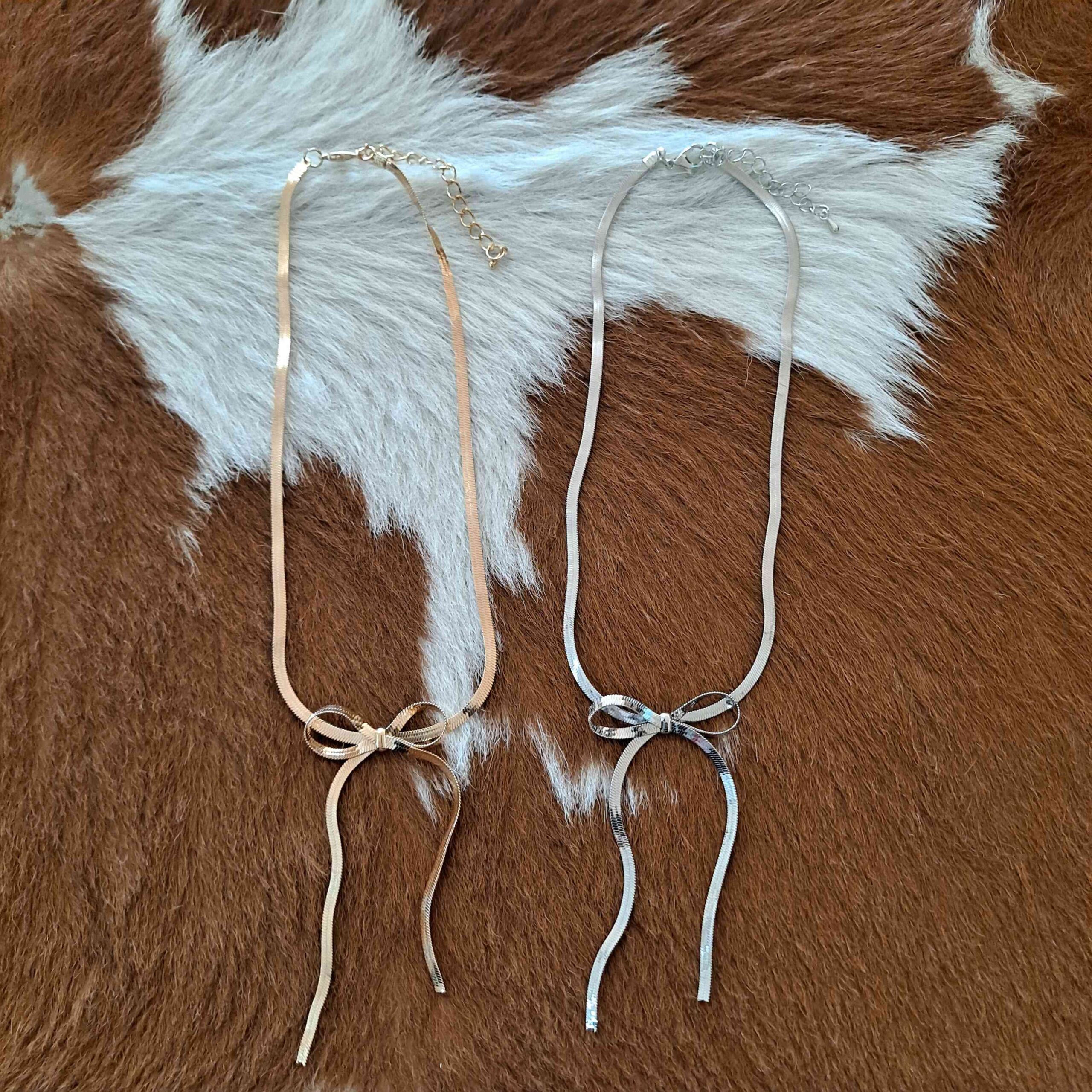Herringbone Snake Chain Bow Necklace