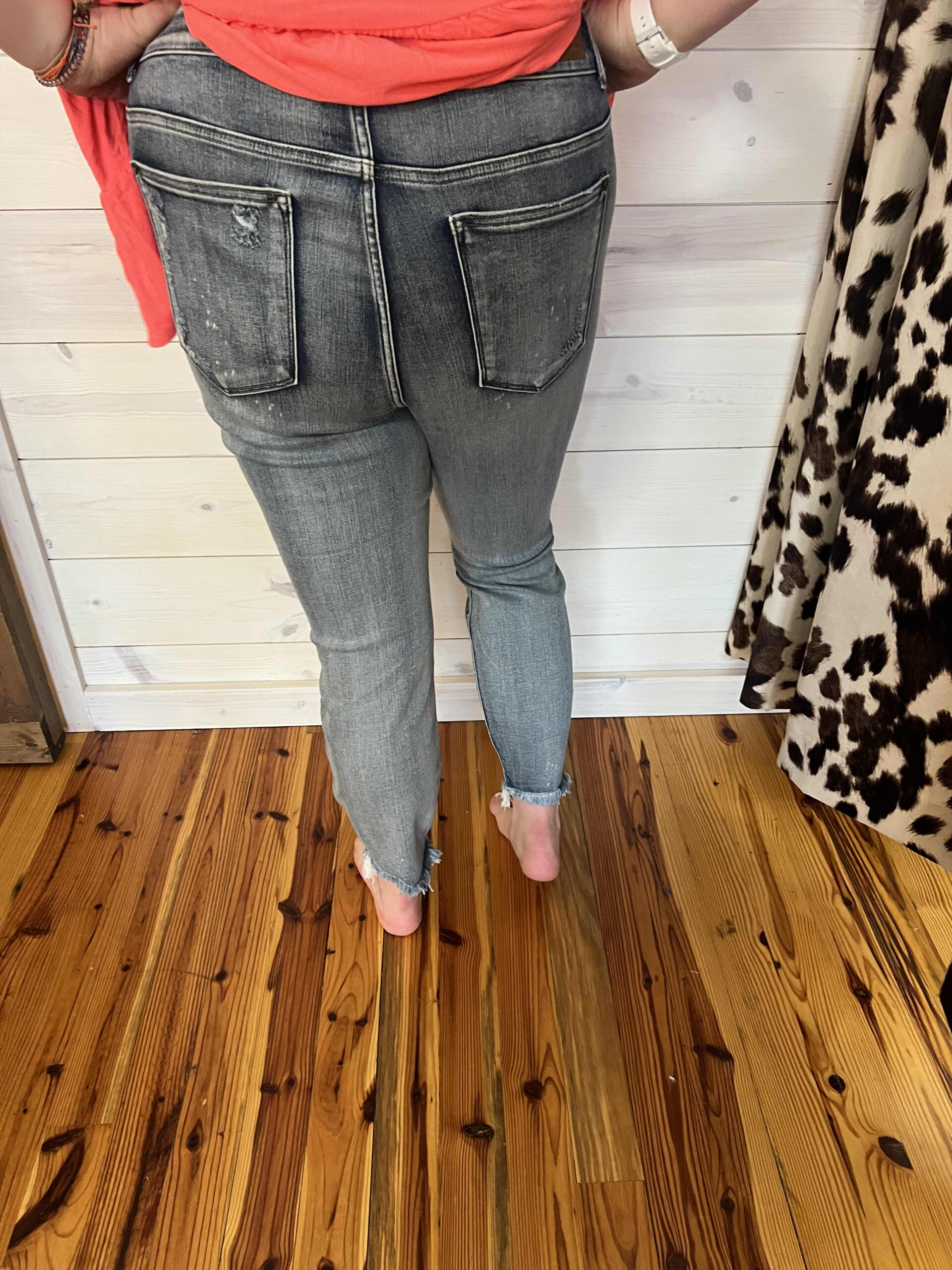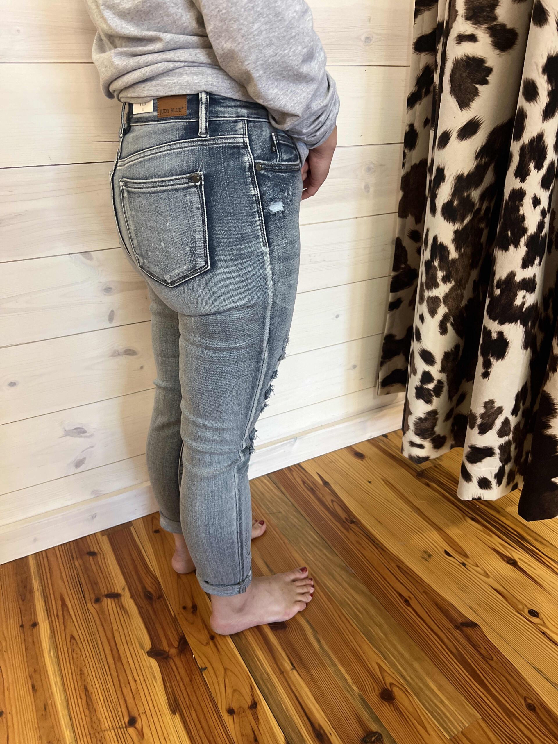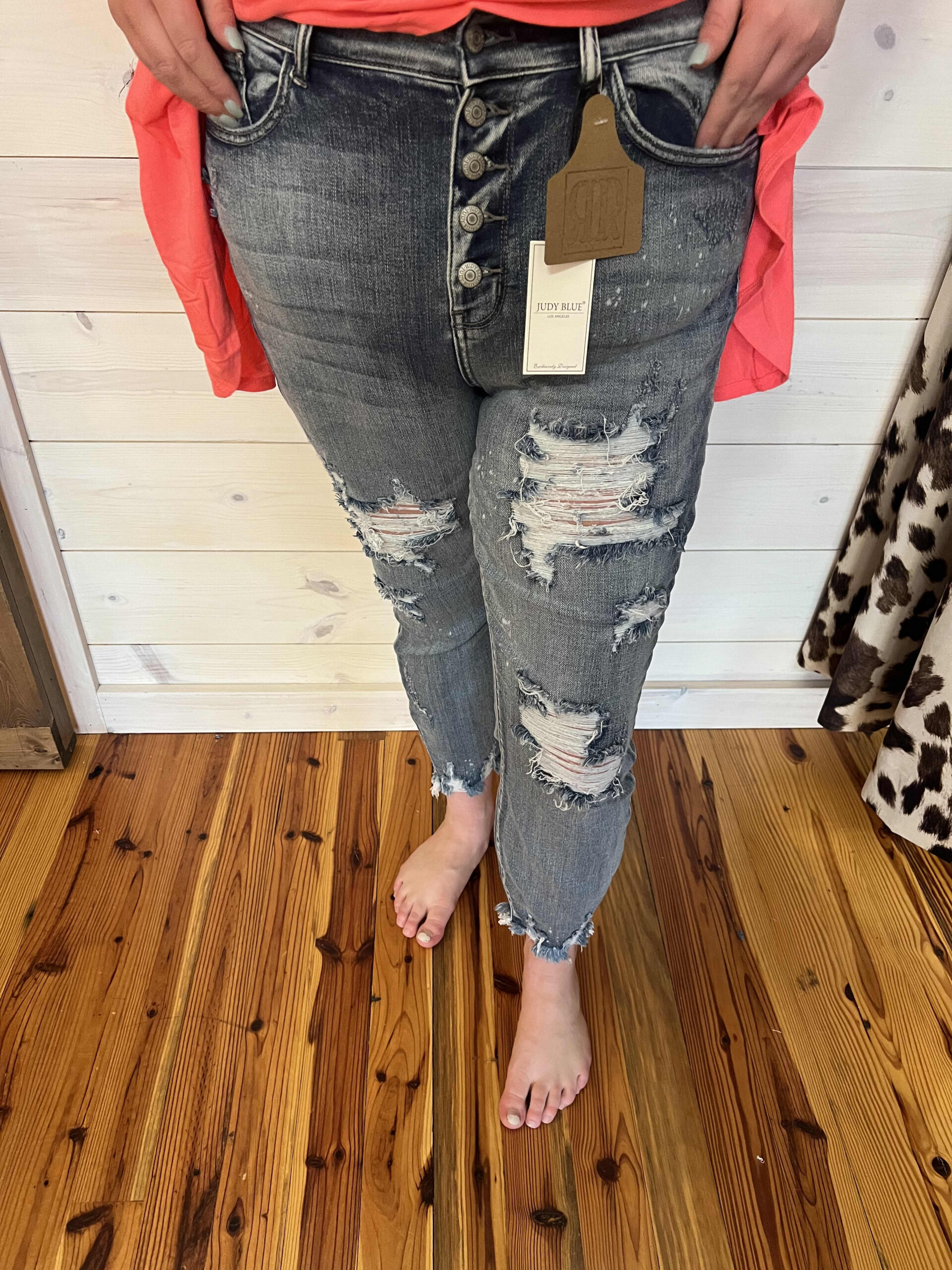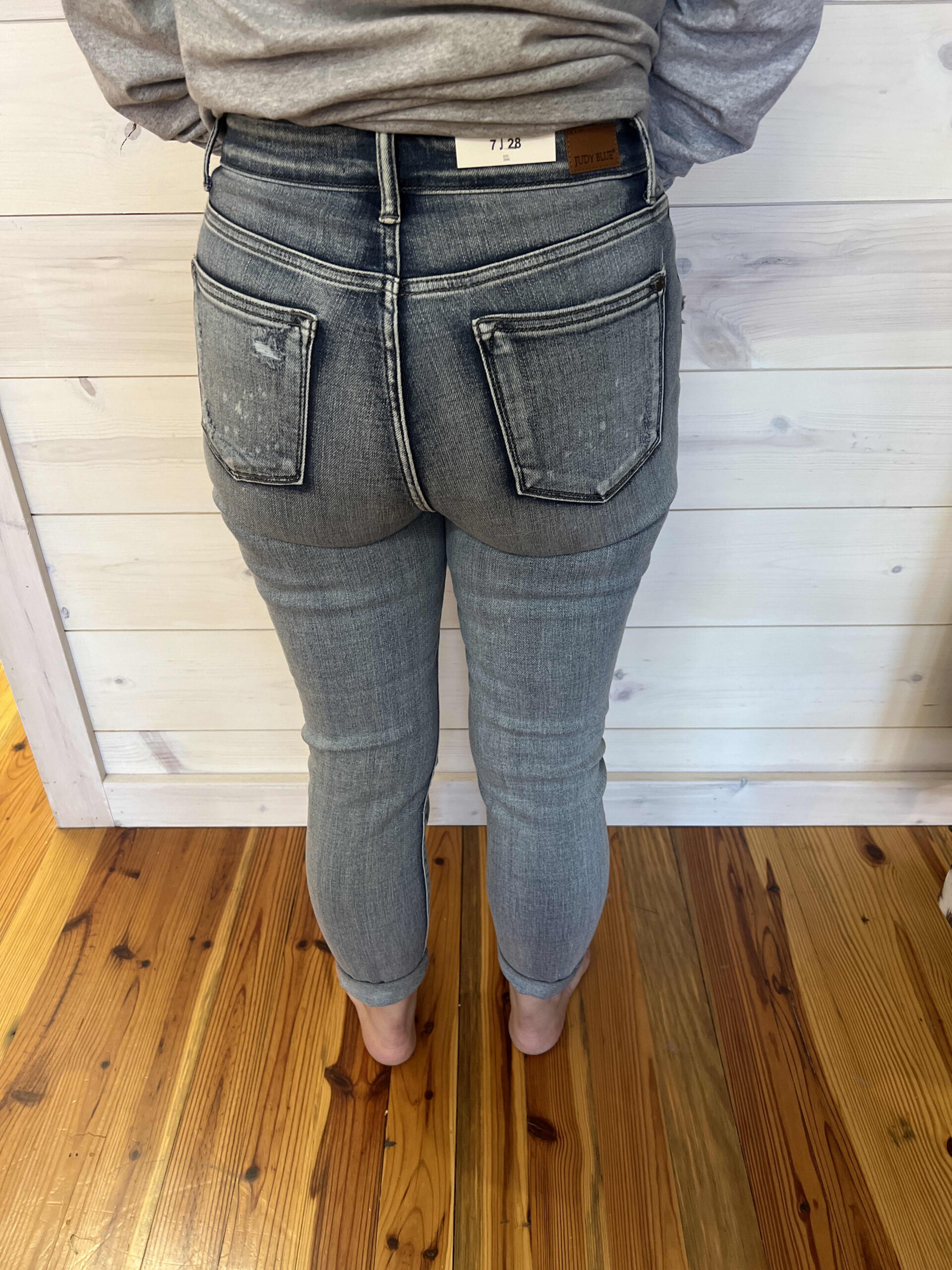 Hi-Waist Button Fly Skinny Bleach Splash Destroyed