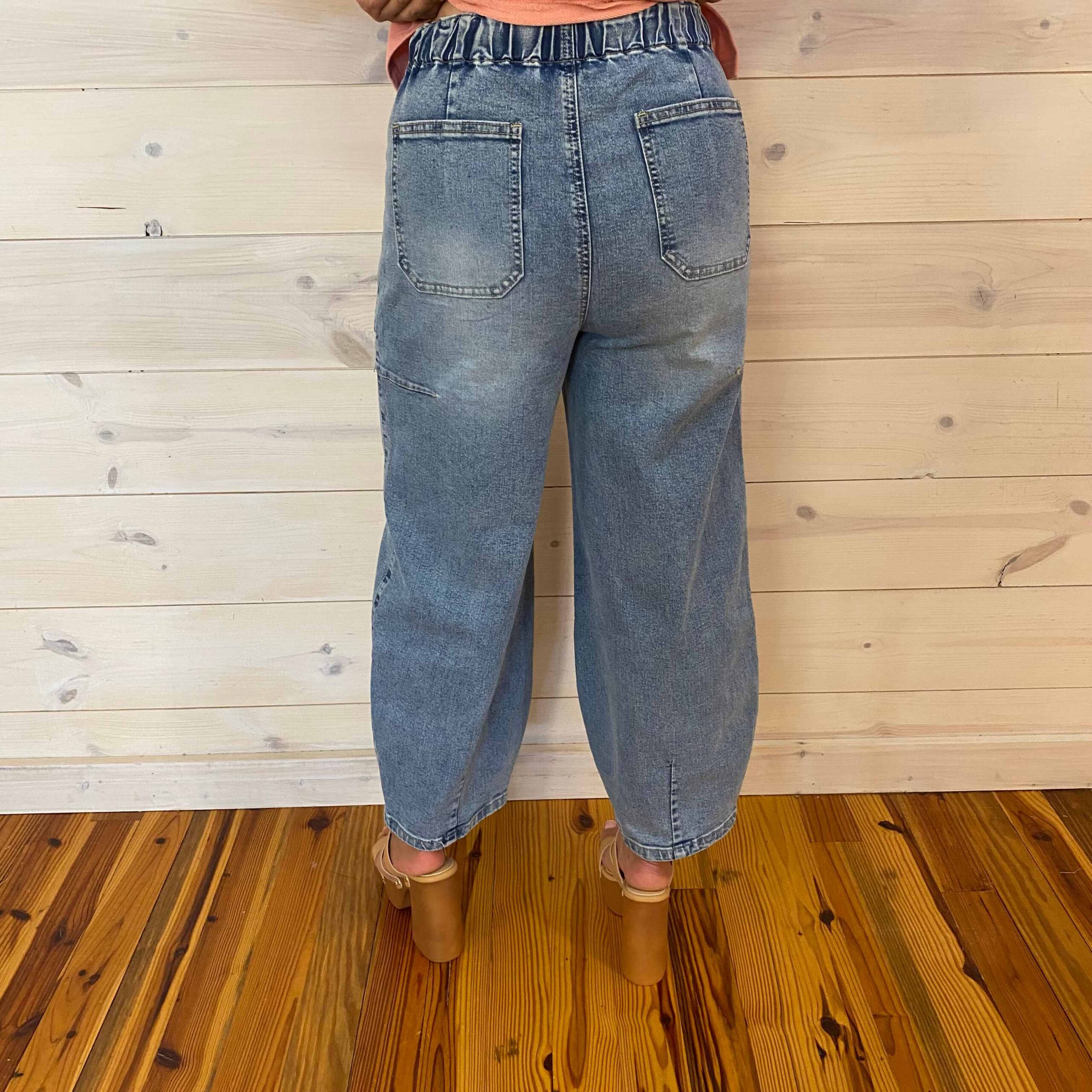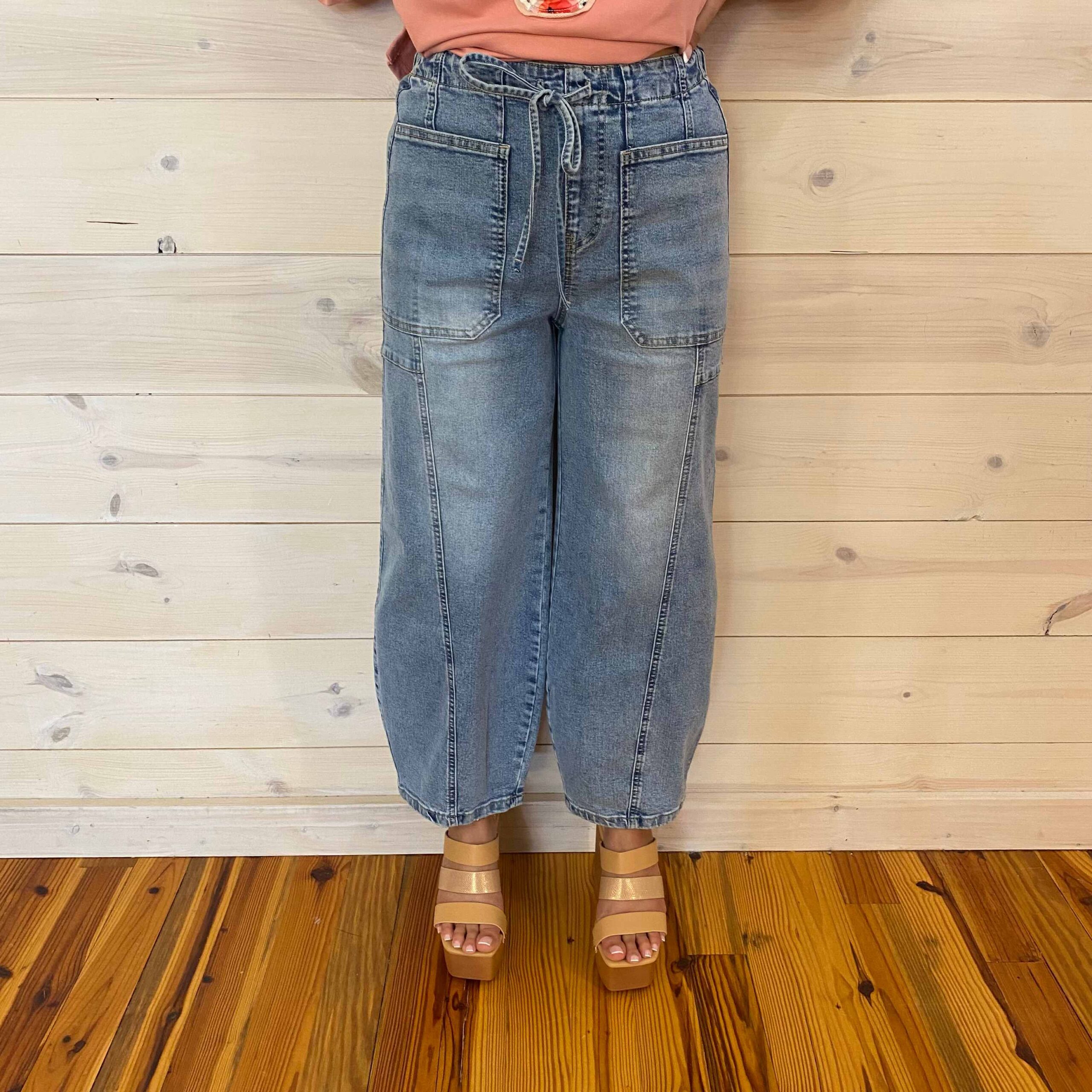 Izzy-Large Patch Pocket Drawstring Paperbag Waist Barrel Jeans
