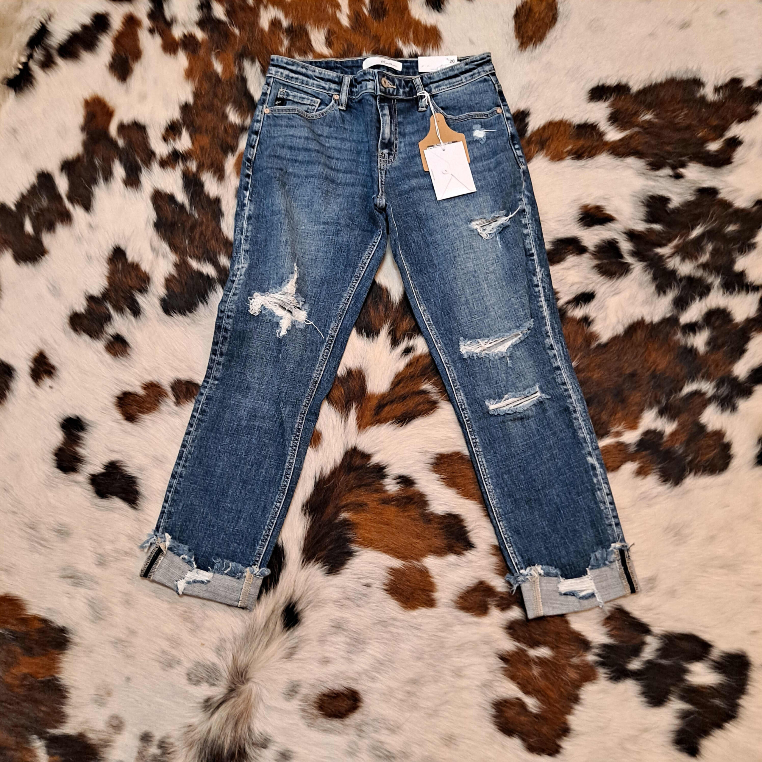 Joleea-Mid Rise Distressed Cuffed Slim Boyfriend