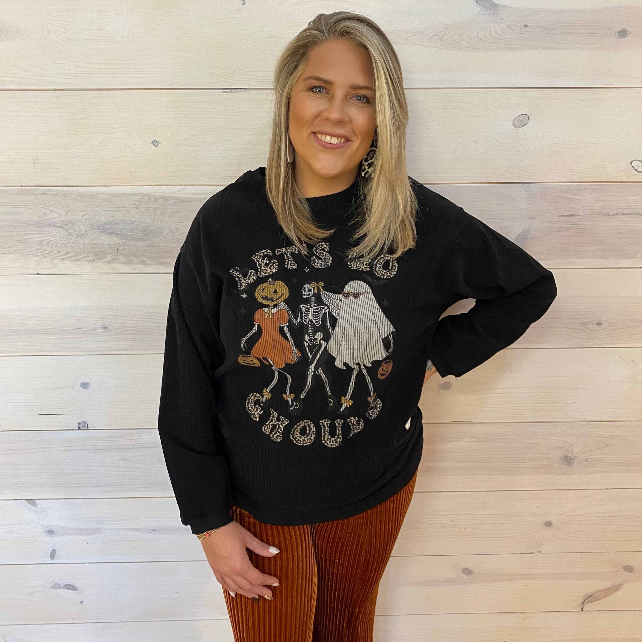 Let’s Go Ghouls Halloween Spooky Crew Neck Pumpkin Skull Pullover Sweatshirt