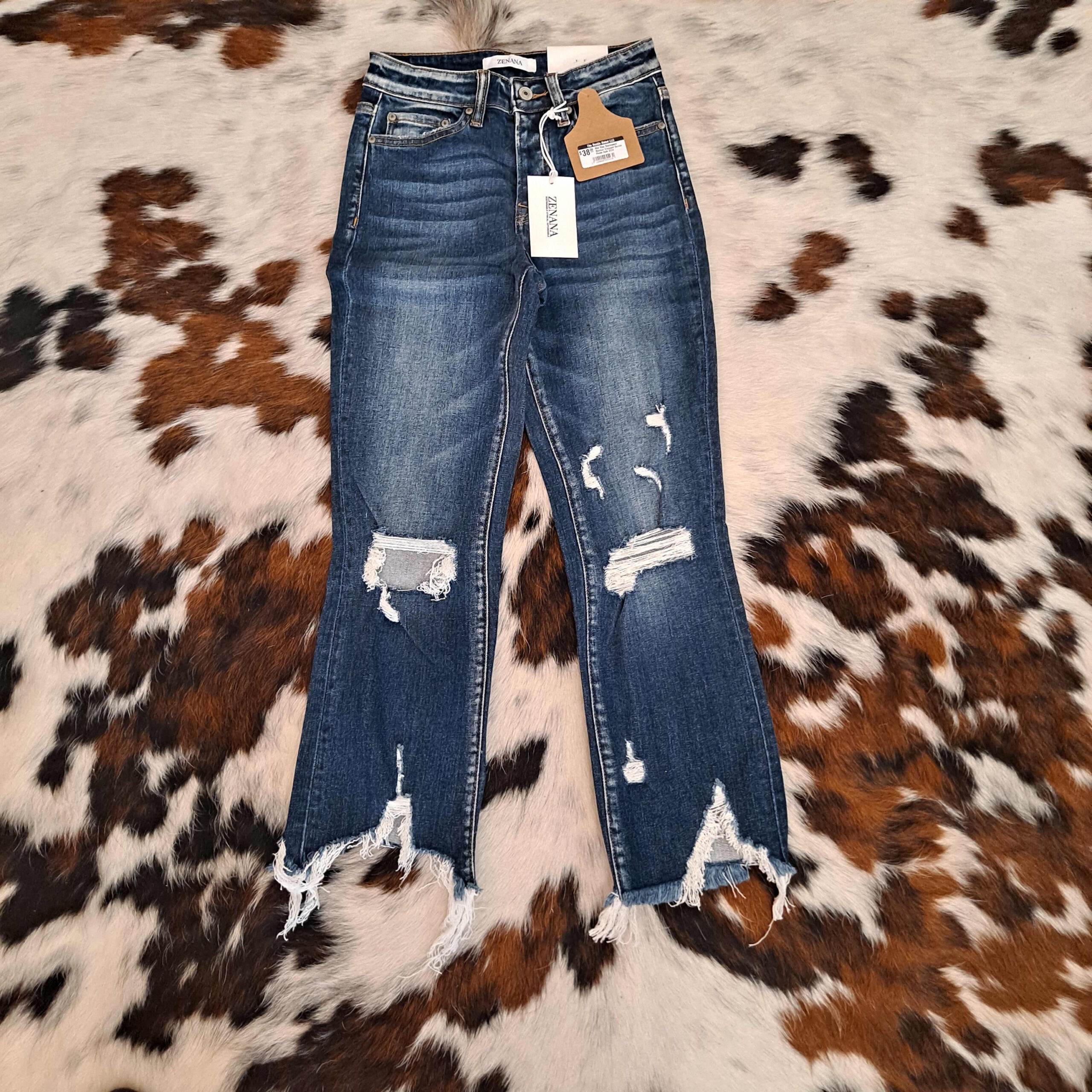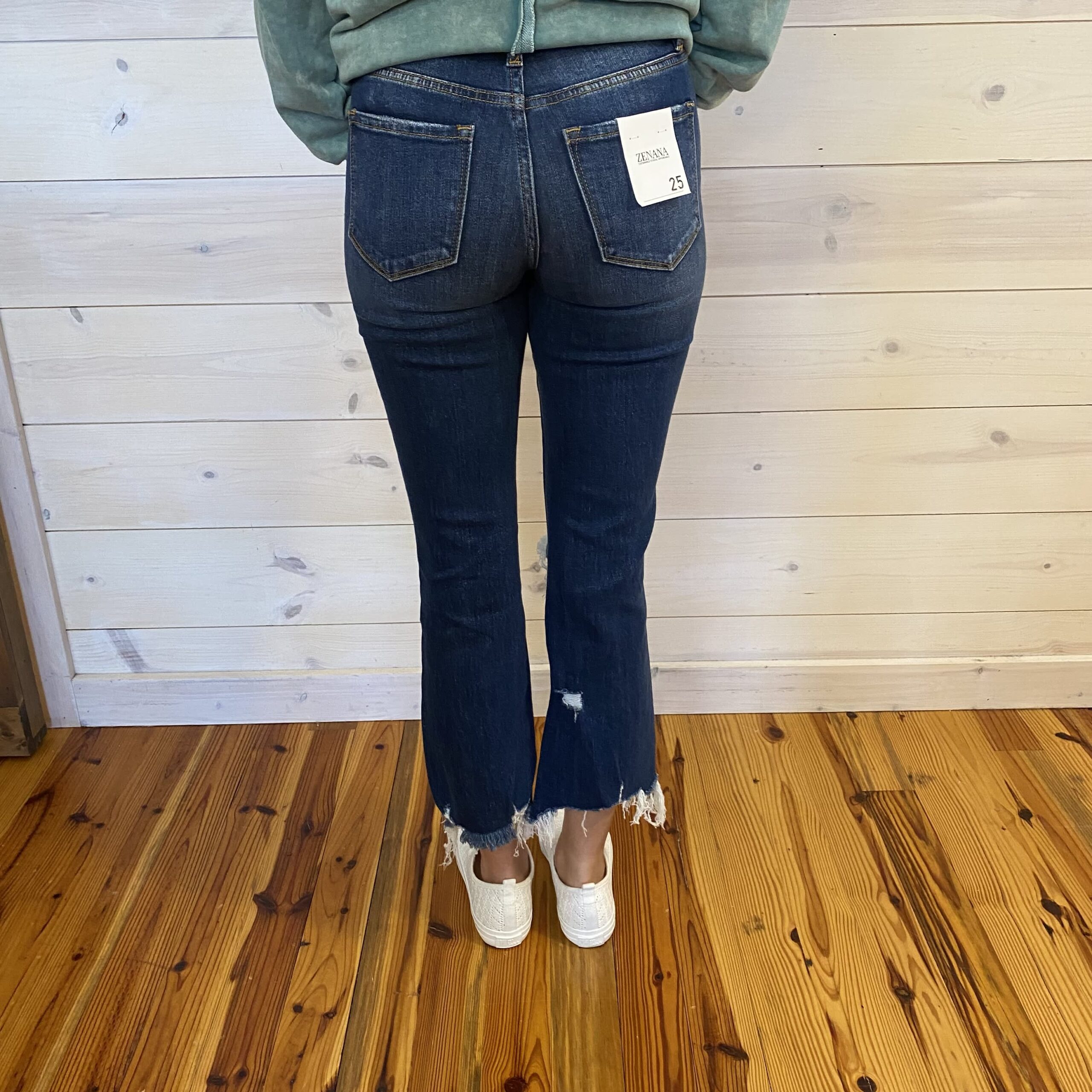Mid Rise Distressed Bootcut Cropped Denim Pants