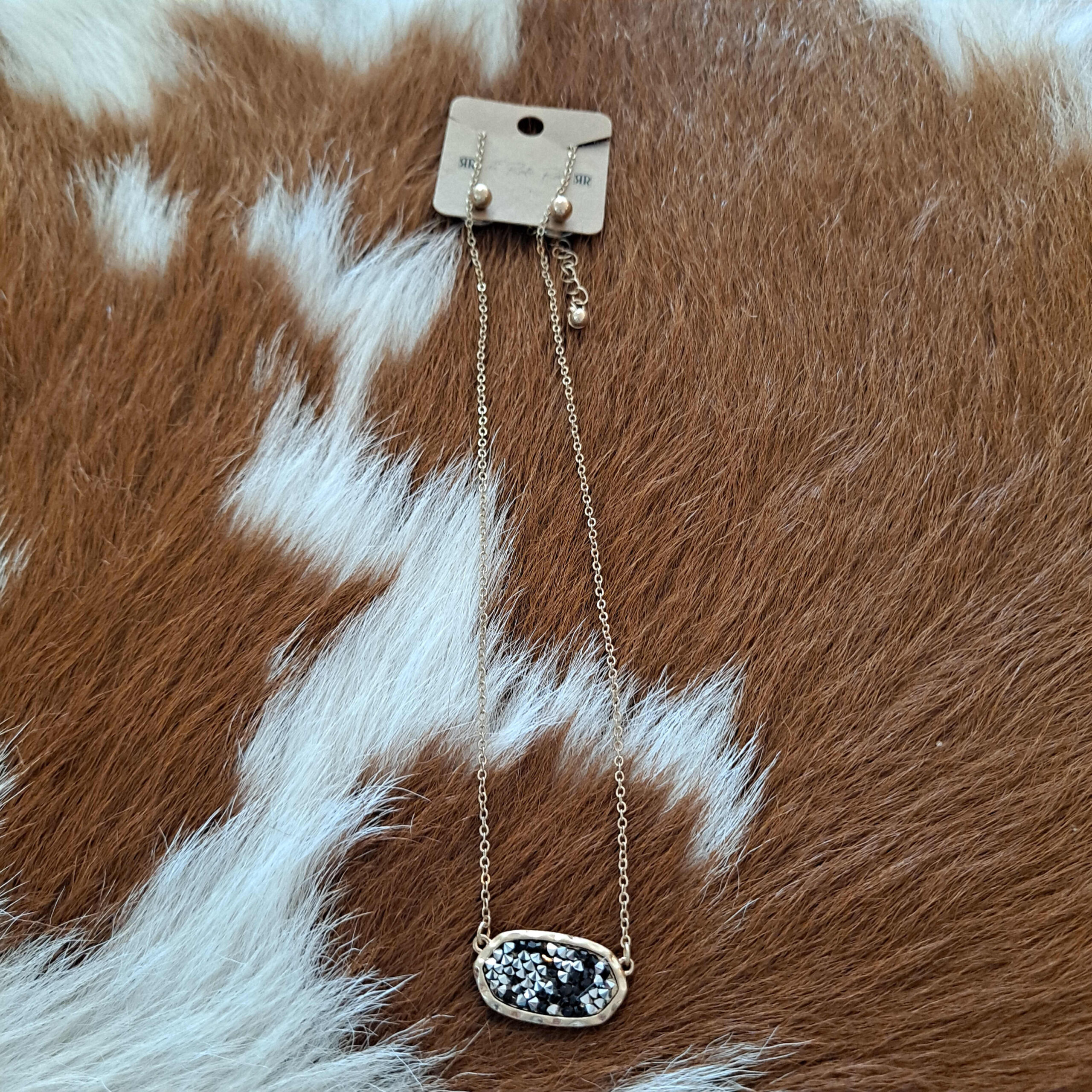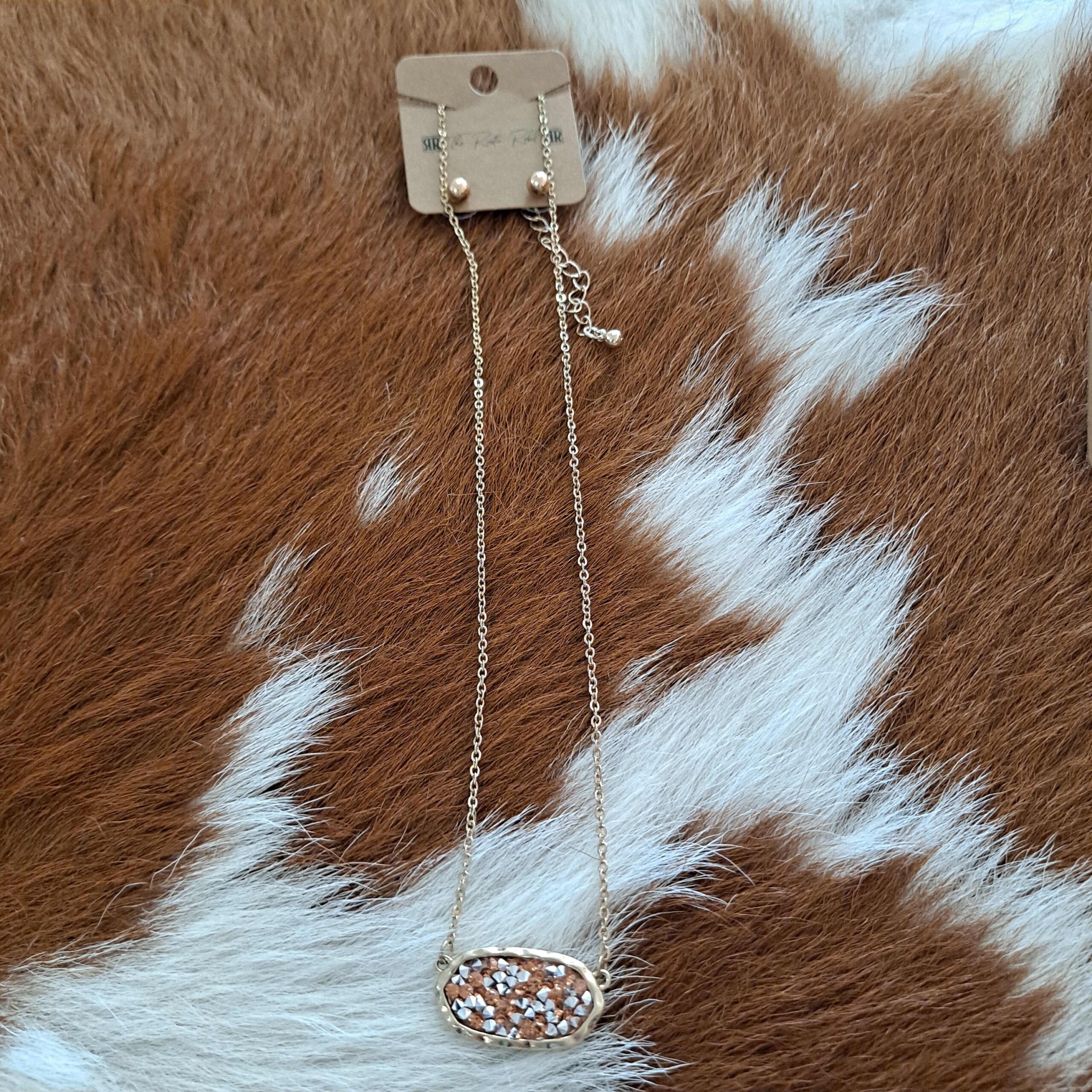 Oval Glitter Stone Accented Adjustable Necklace