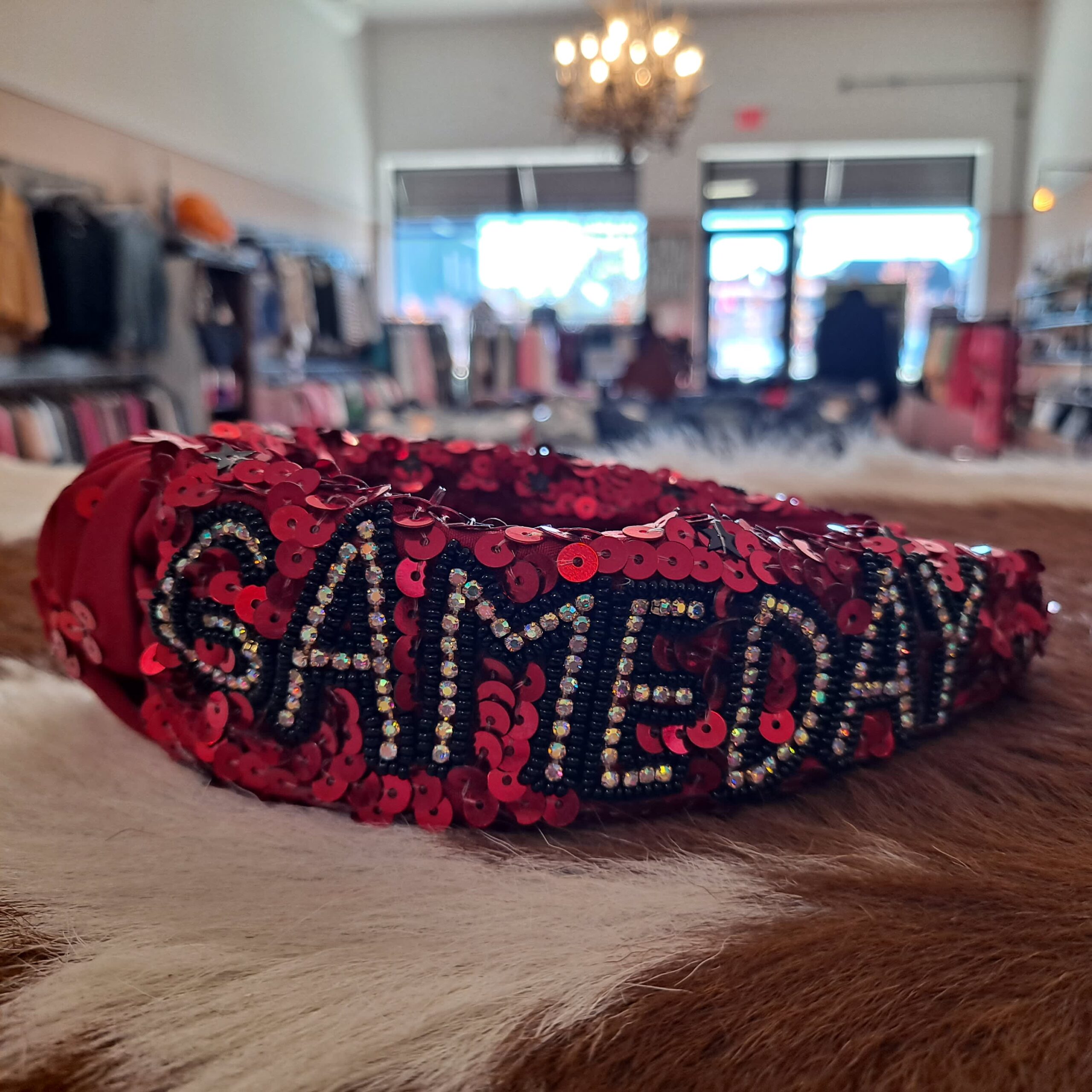 Red Sequin Game Day Rhinestone Accent Knot Headband