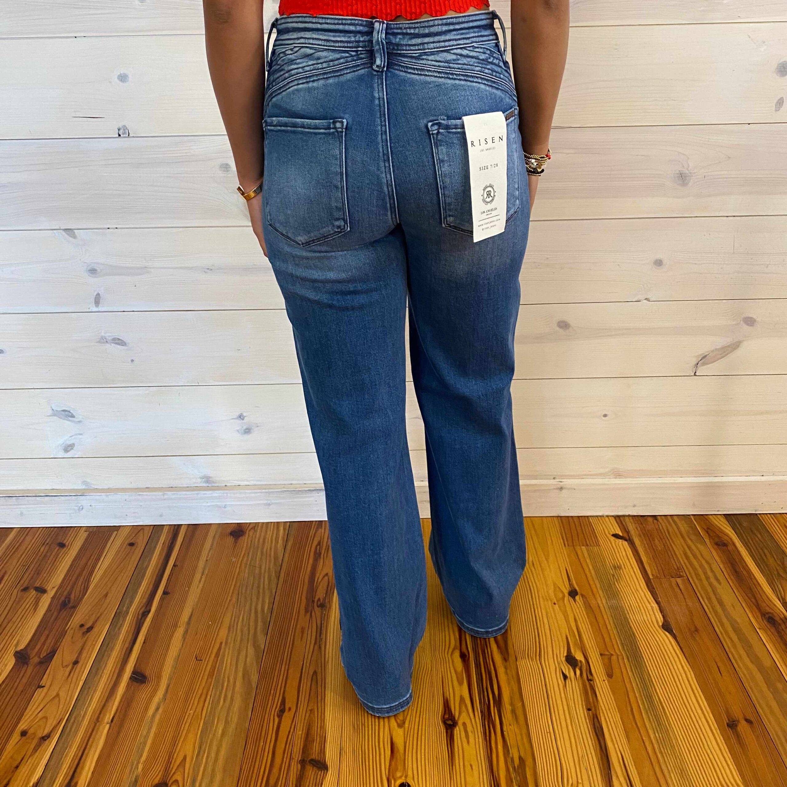 Riley-High Rise Wide Leg Waist Detail Jeans