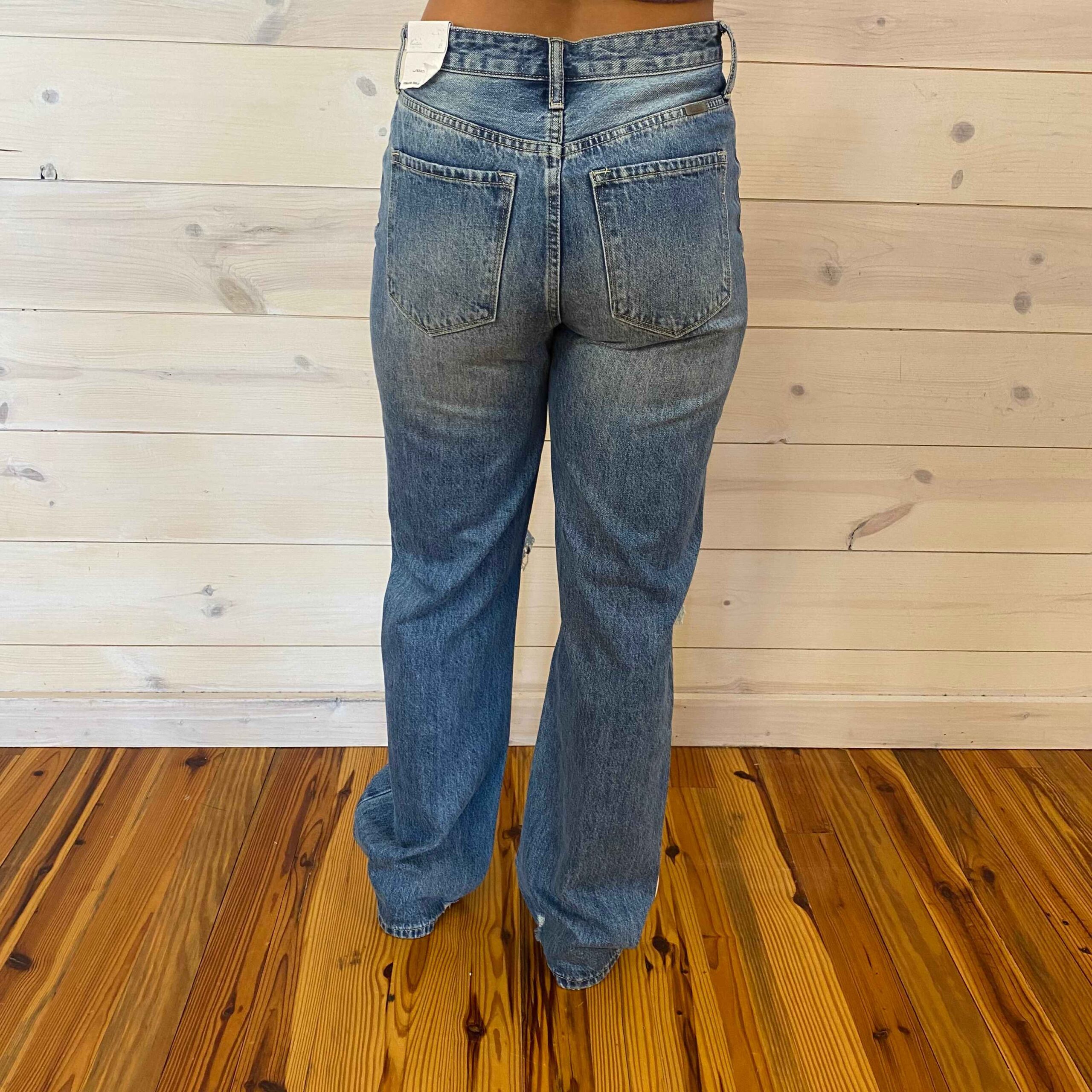 Sarah-Cosmo High Rise 90’s Criss Cross Straight Jeans
