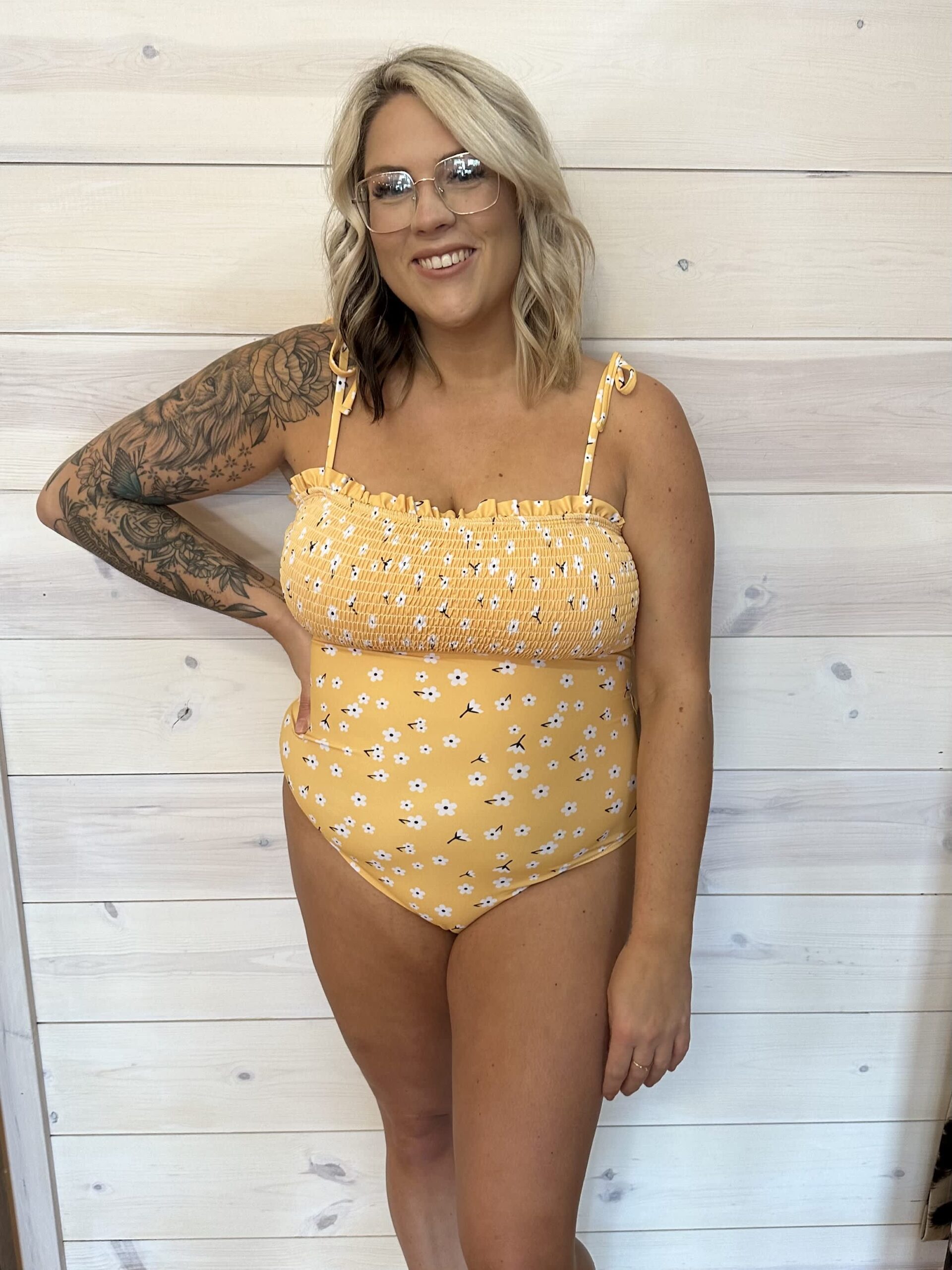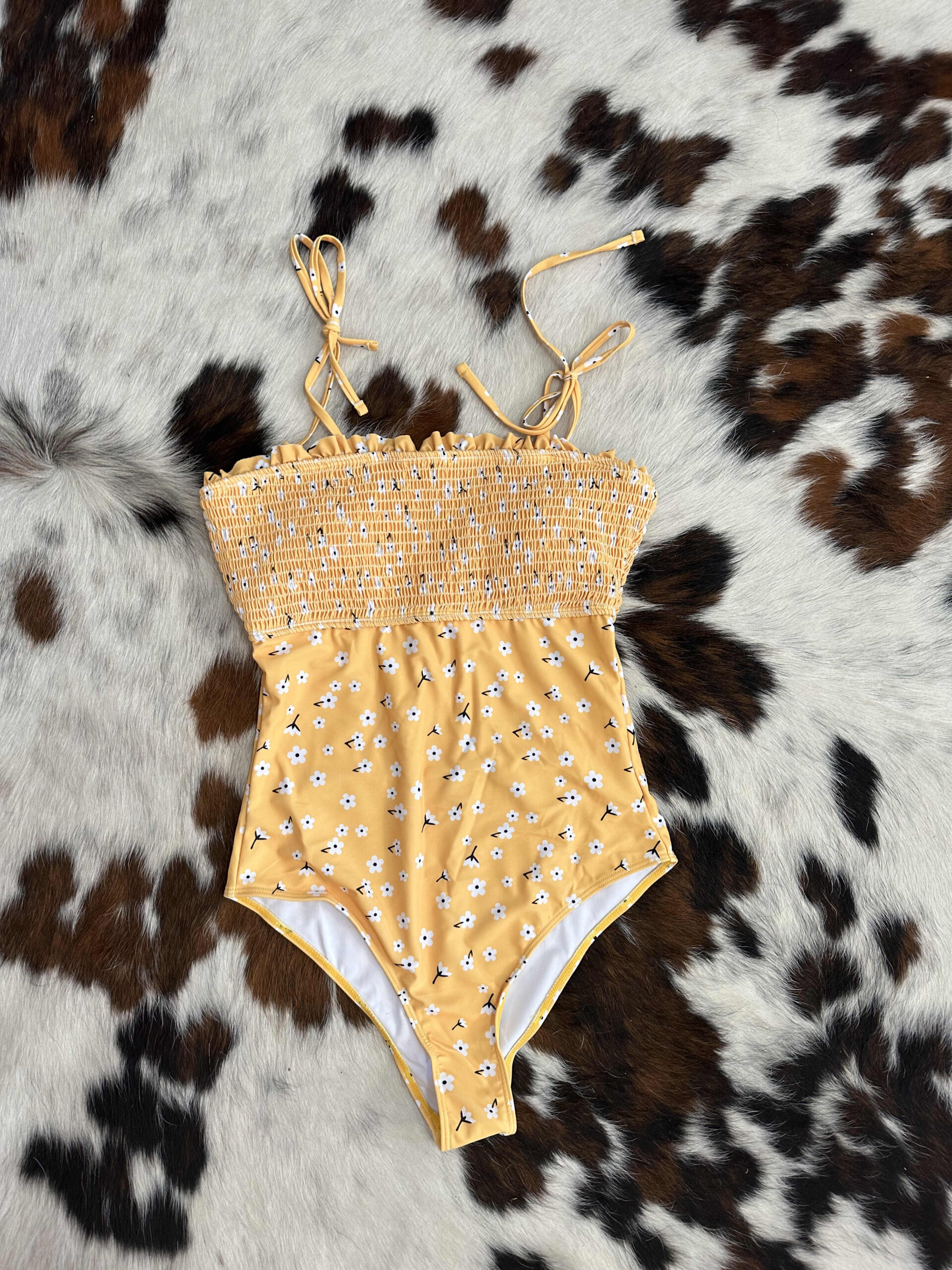 Smocked Bust Printed One-Piece Swimwear