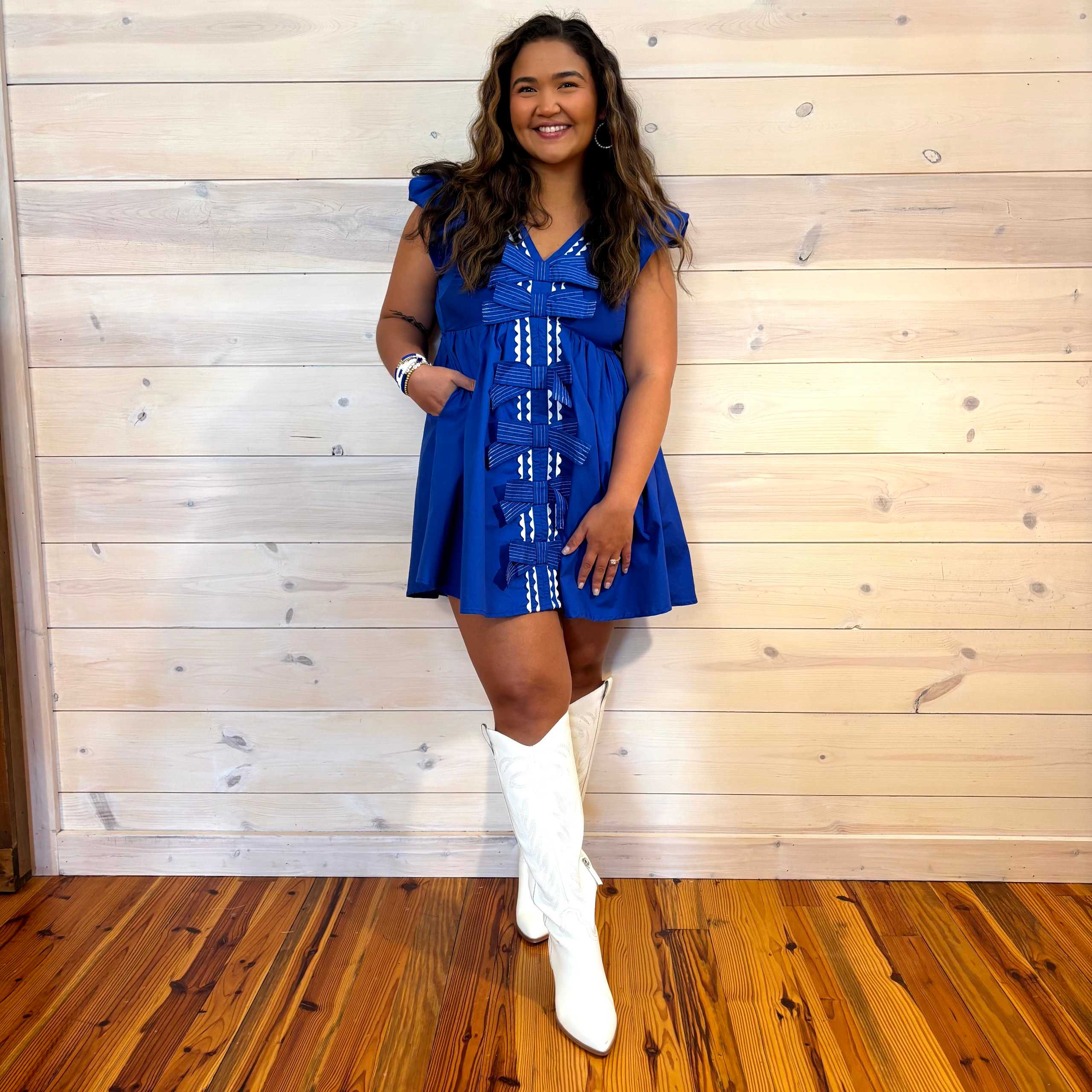 Solid Cotton Poplin Ric Rac Trim Detail Mini Dress with Pockets
