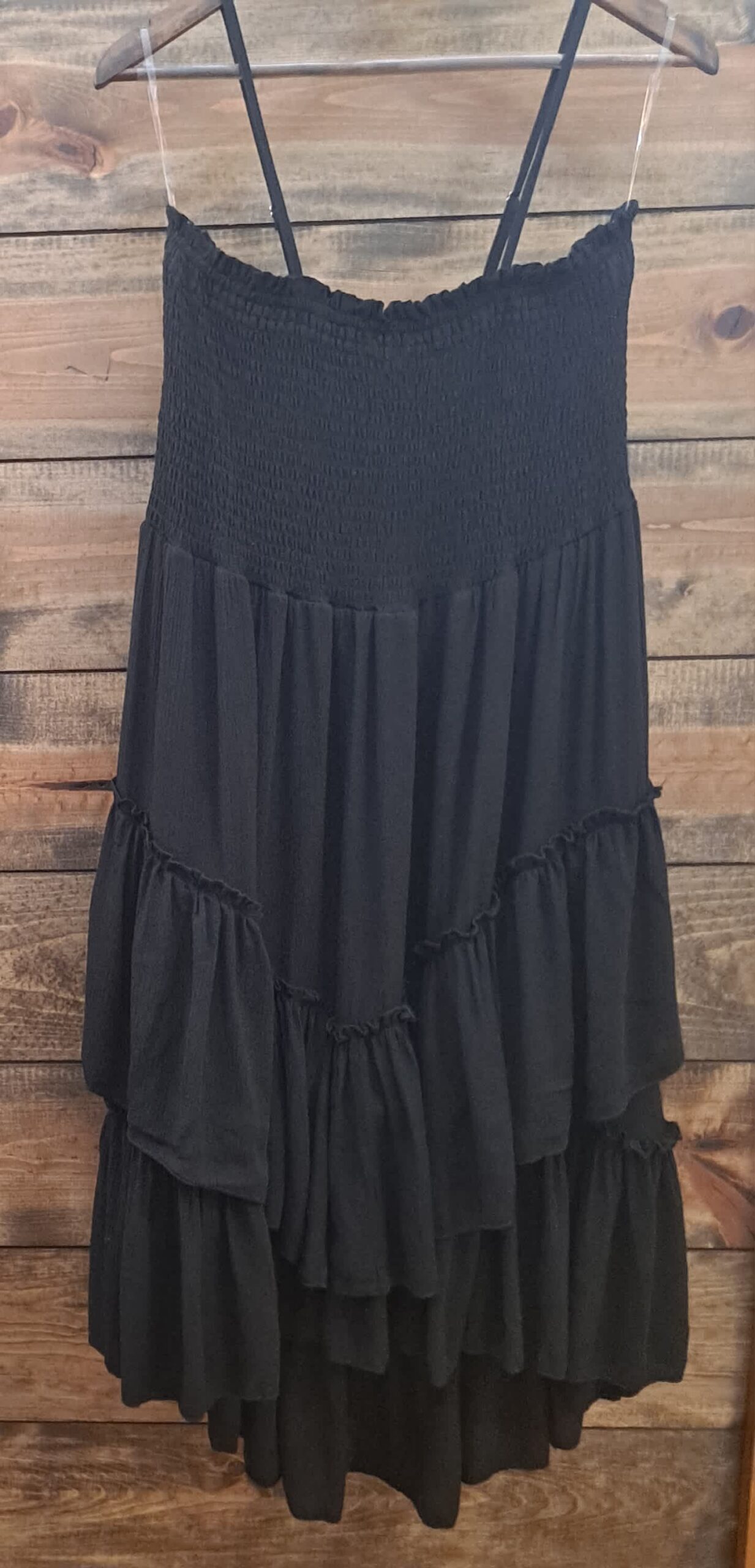 Square Neck Smocked Bodice Tiered Ruffle Hem Midi quantity