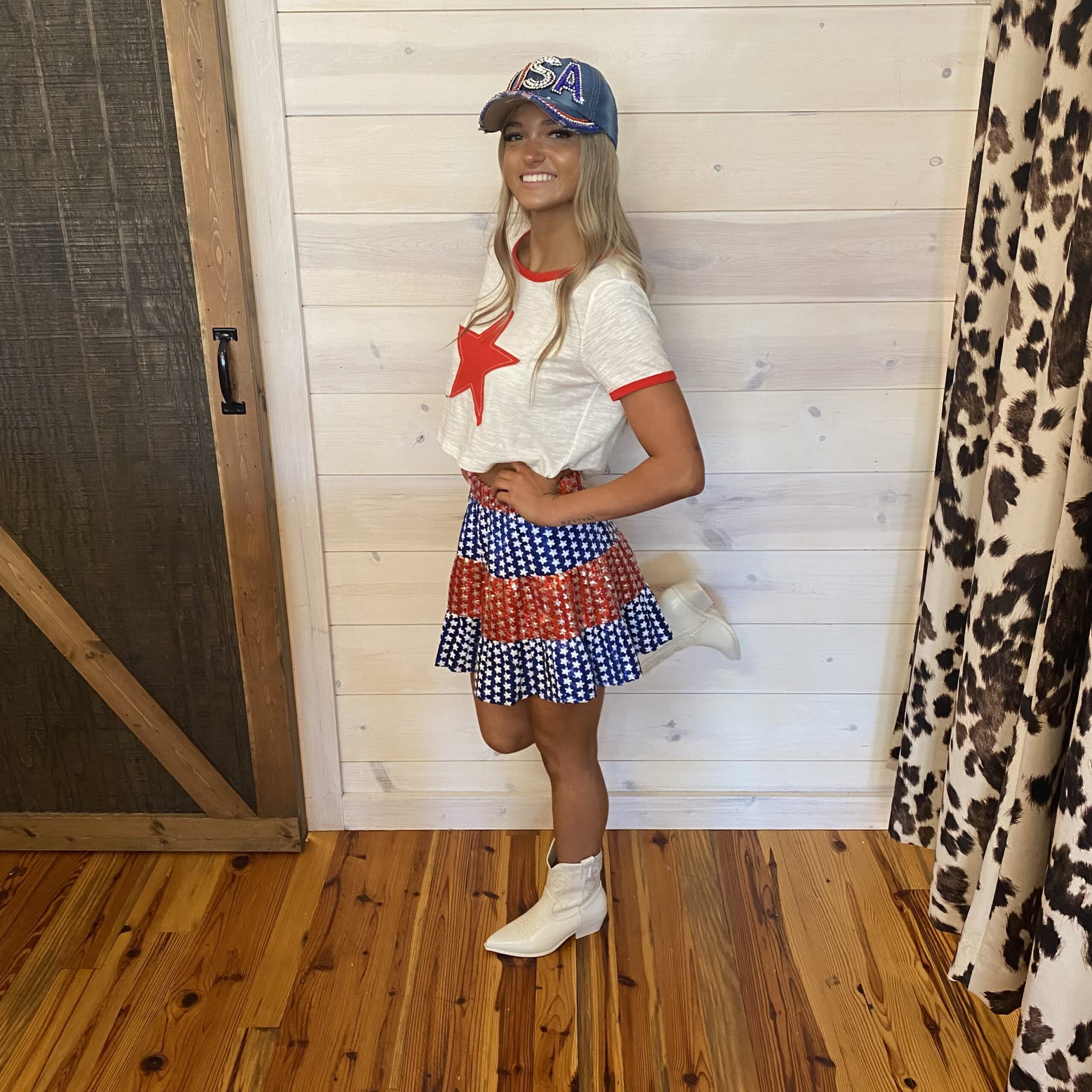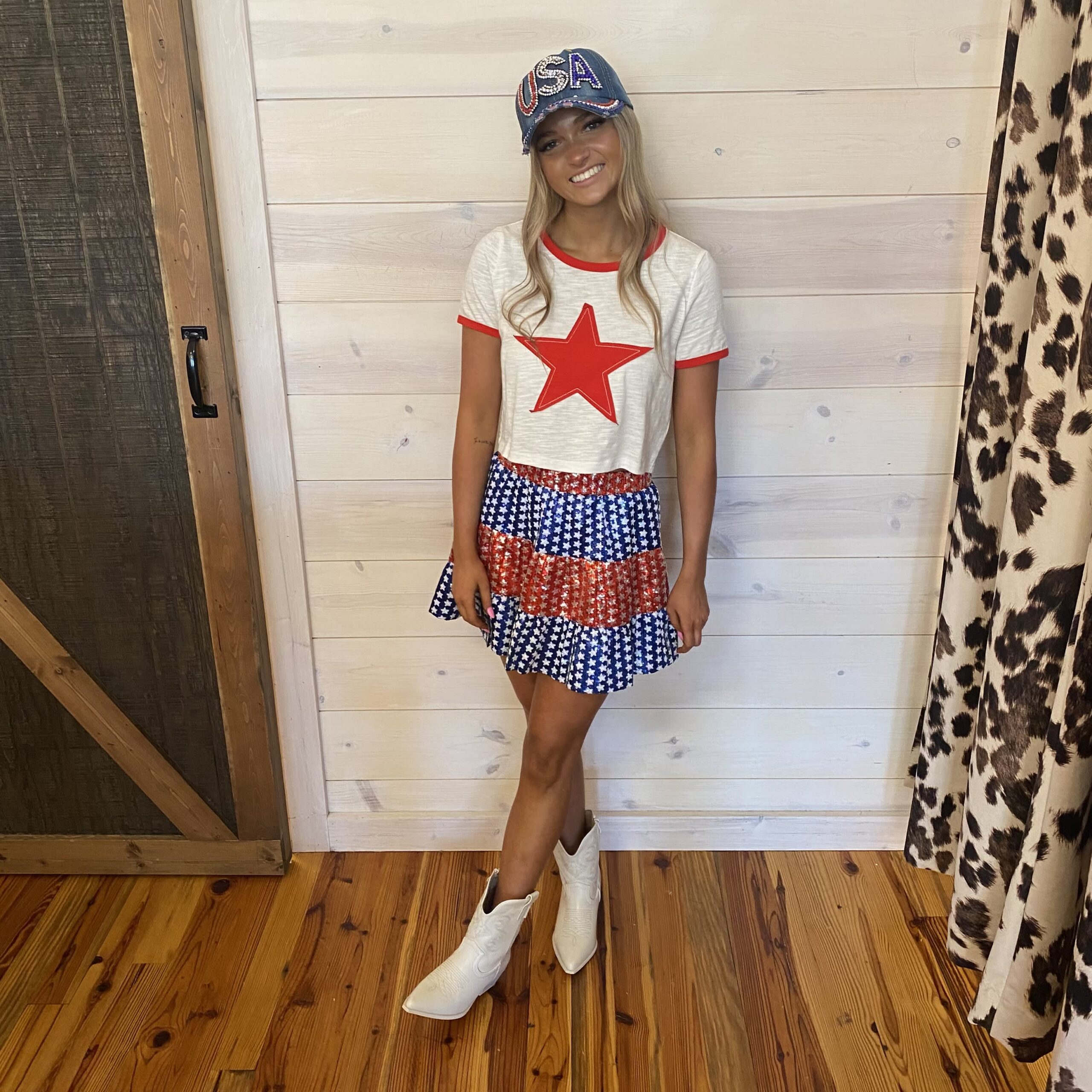 Star Pattern Sequins Mini Tiered Skirt quantity